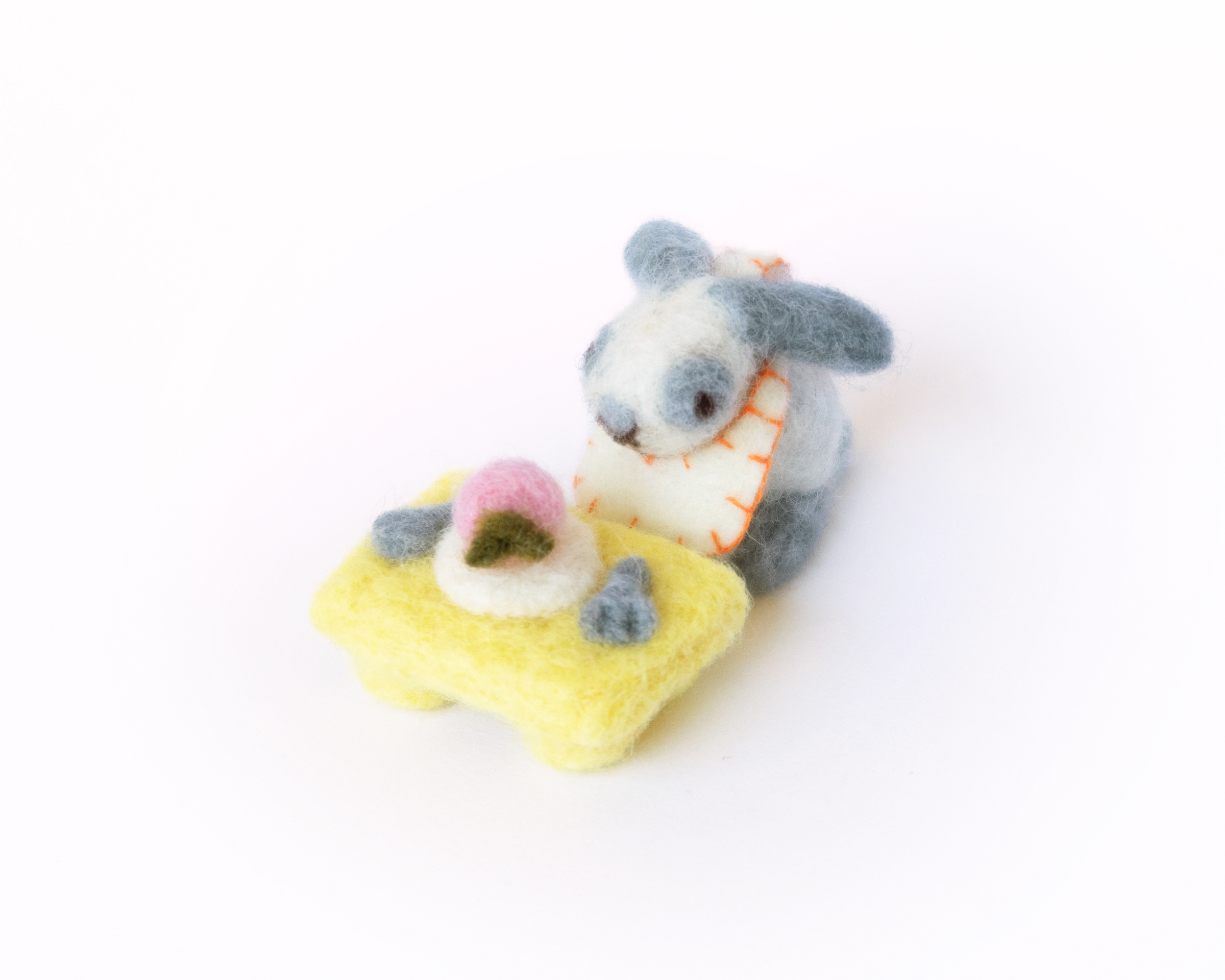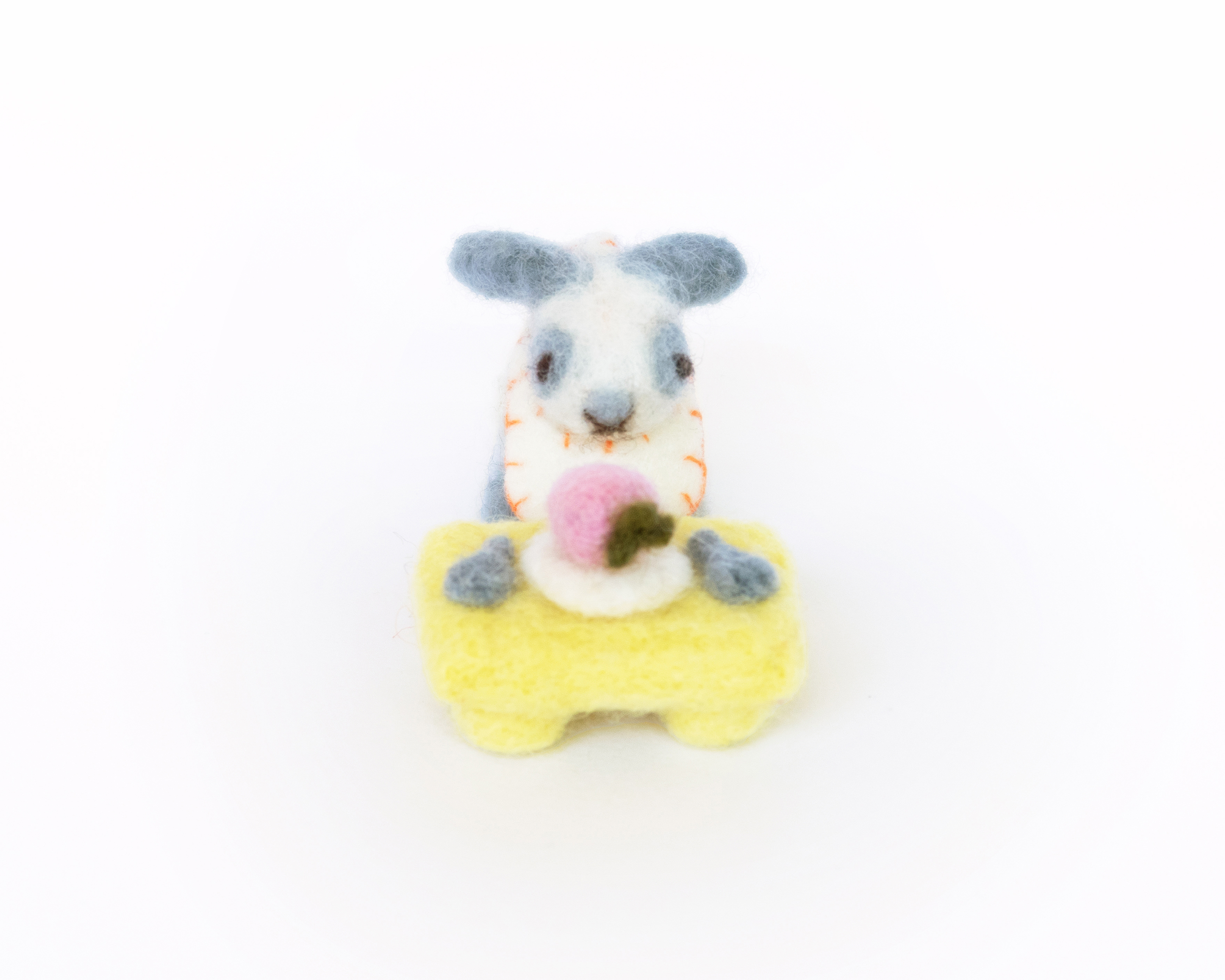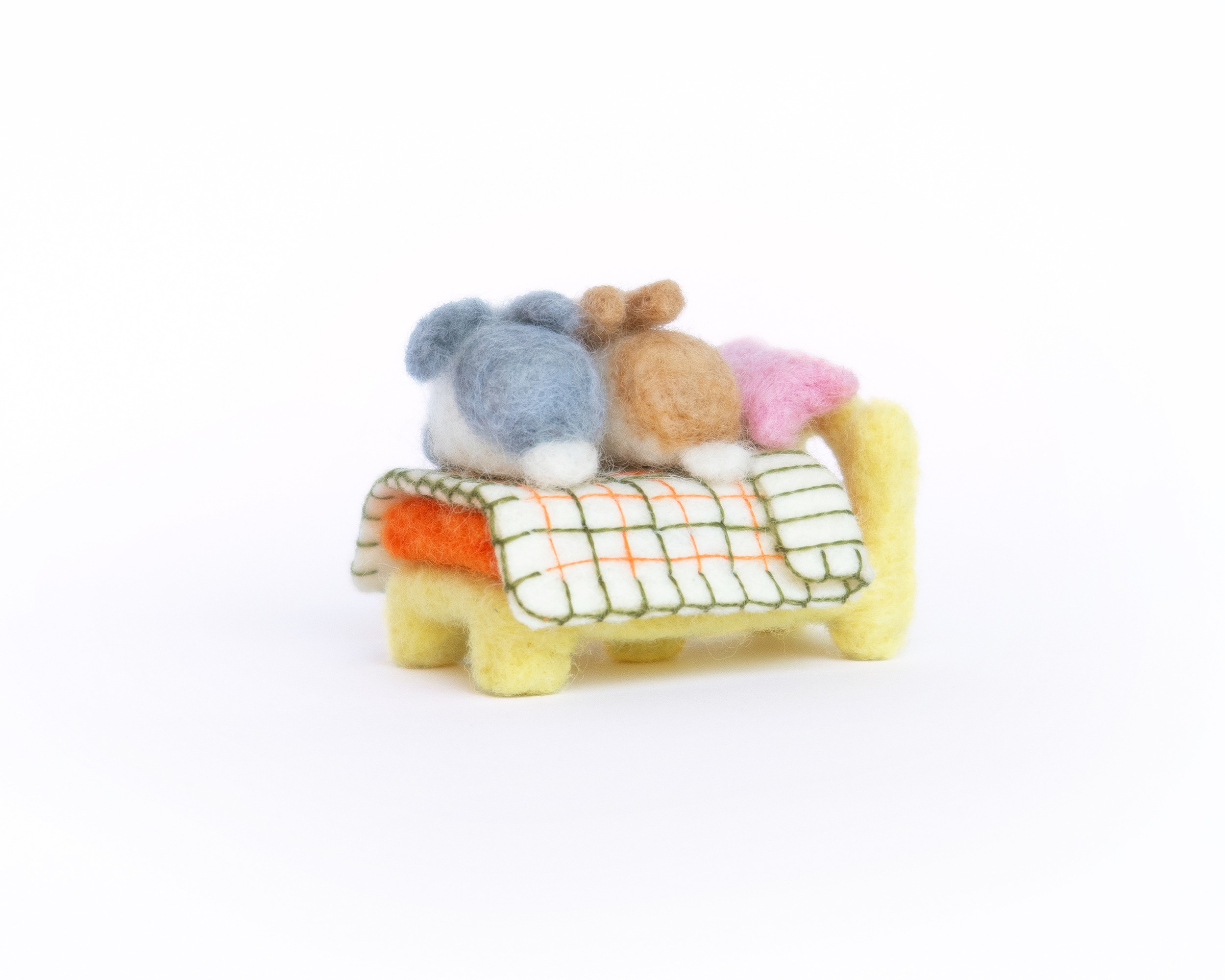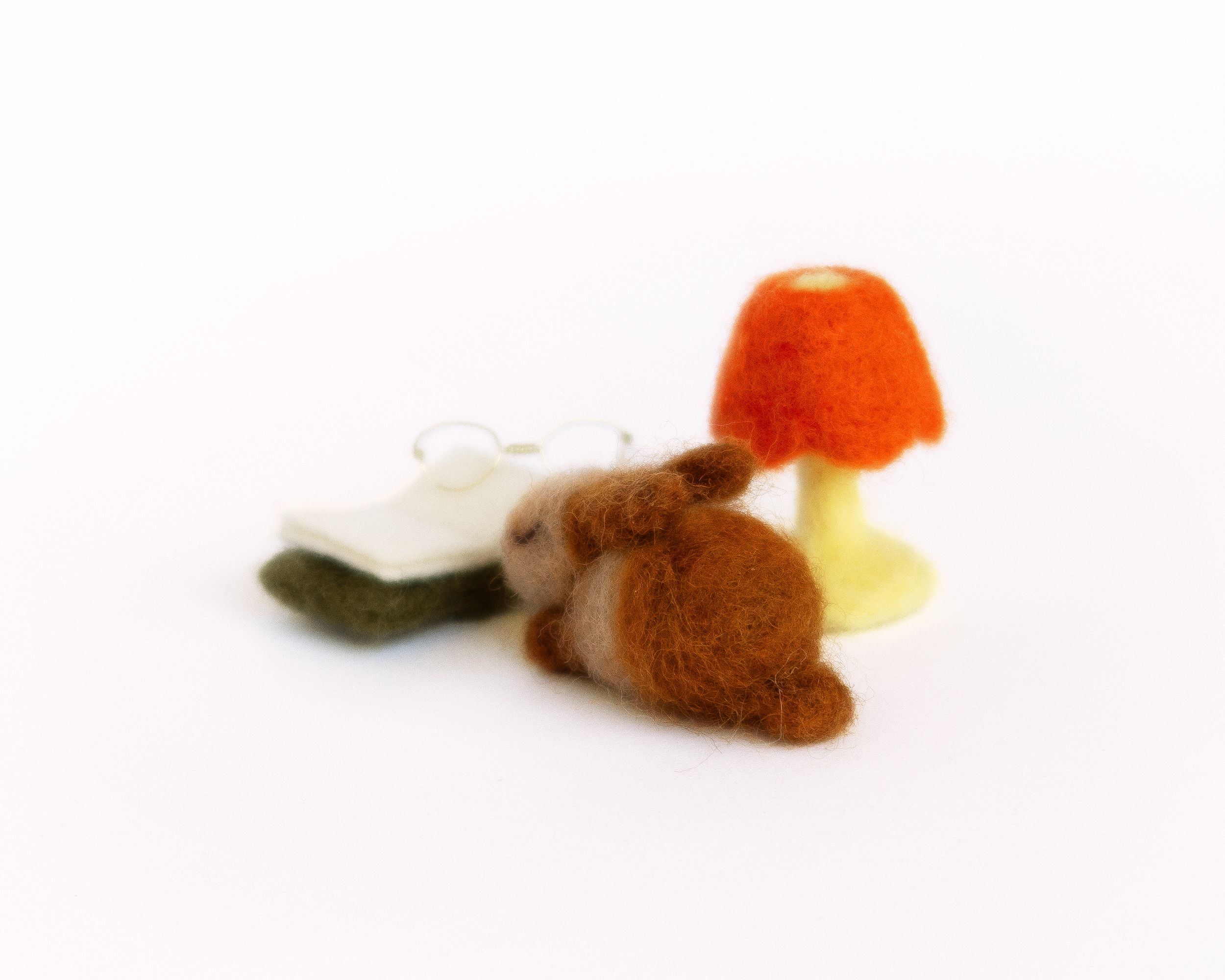 Made from 100% wool fleece and felt, these soft sculptures imagine a world of wonder, comfort and whimsy. Both delicate and vibrant, this collection of miniature felted figures are inspired by children’s play sets and the real-life personalities & behaviours of domestic rabbits.