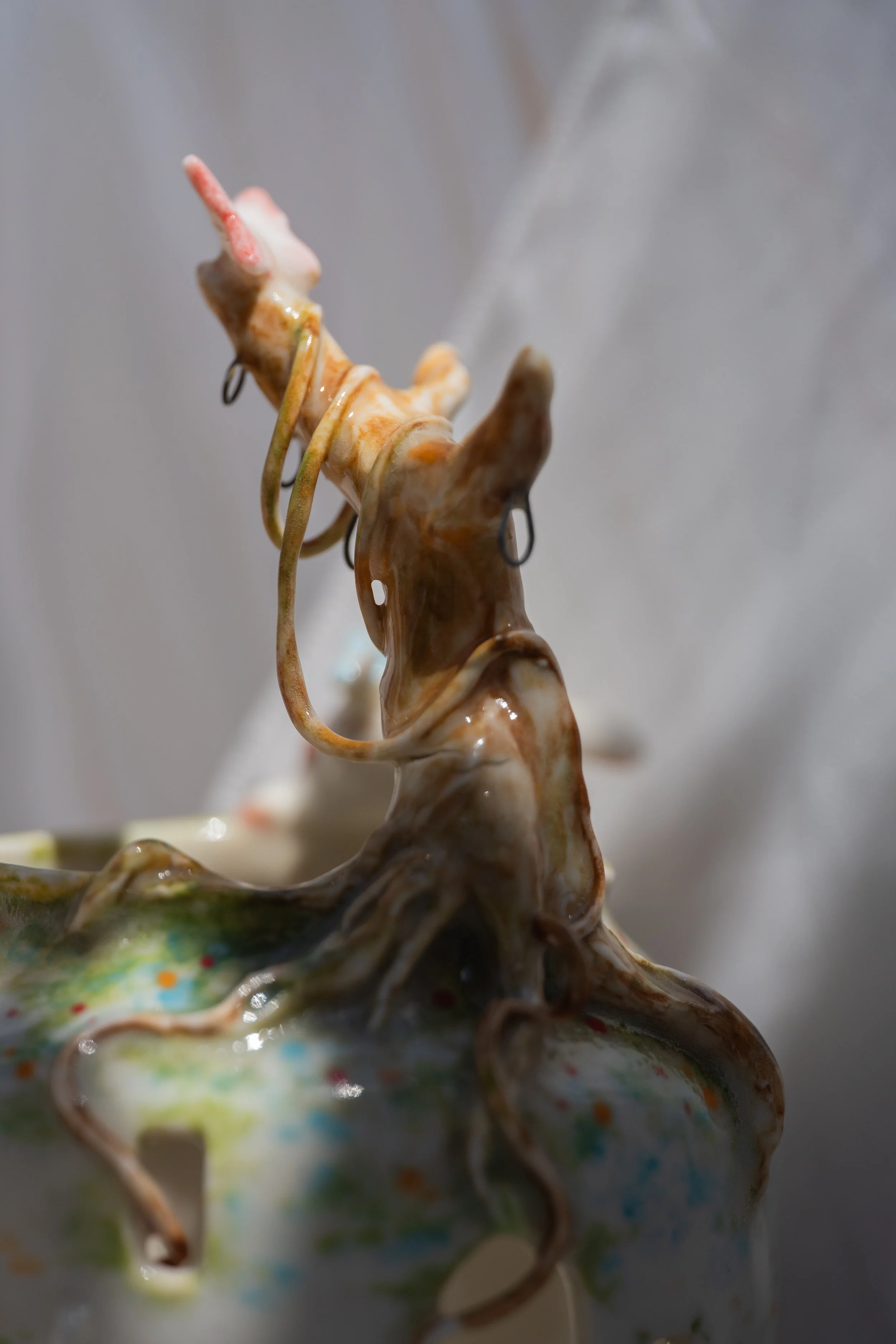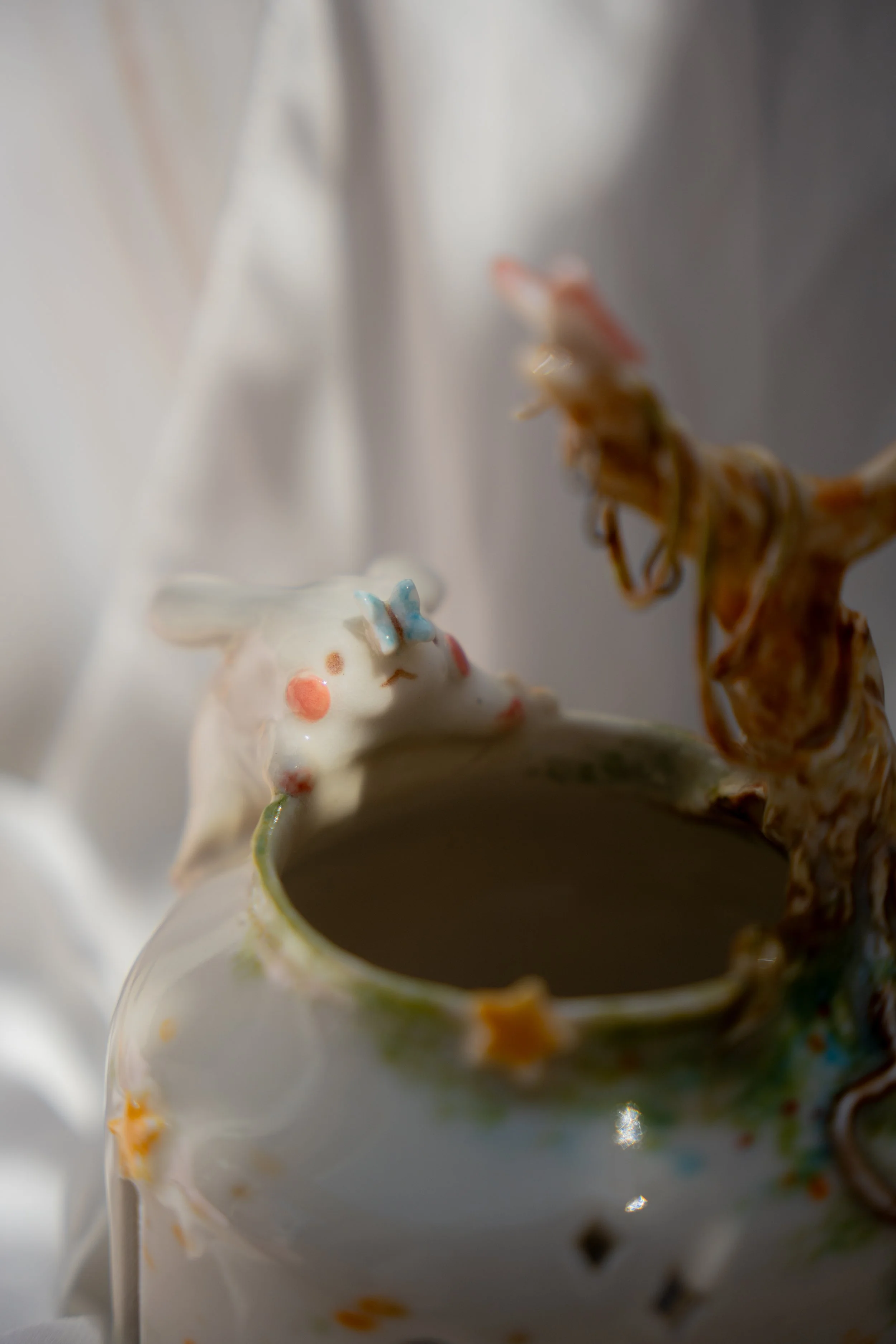 Material: High quality porcelain ceramics, hand-thrown on a wheel and post-processed through hand-building. The base is made using BRT clay with high grog for texture and structure