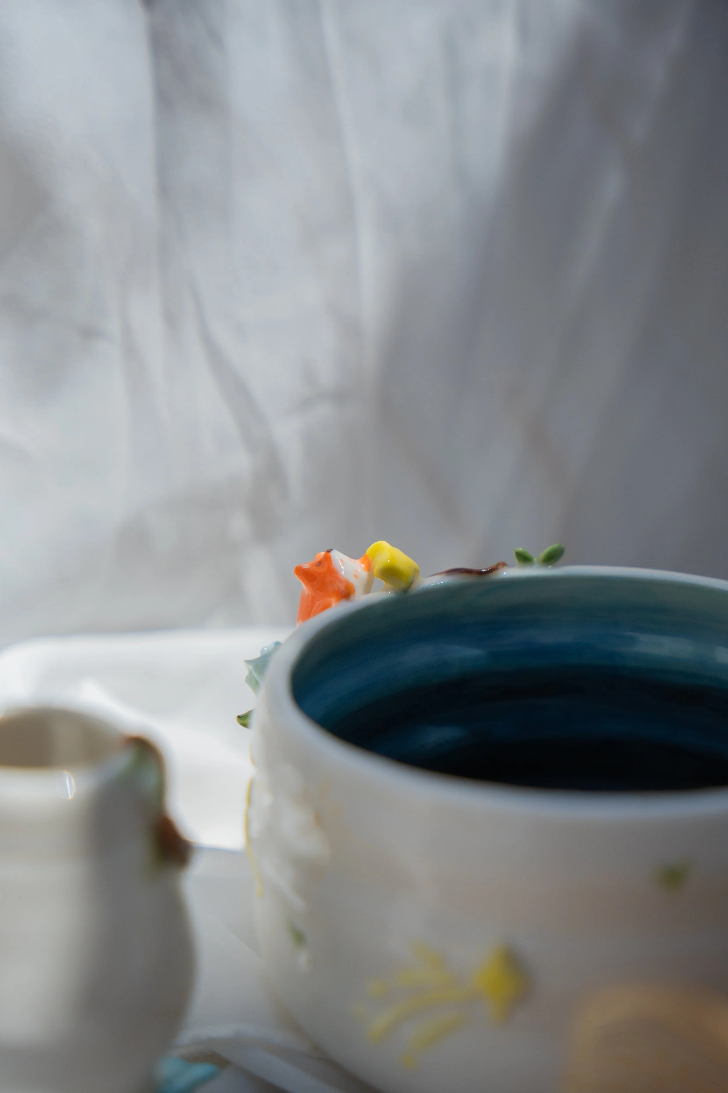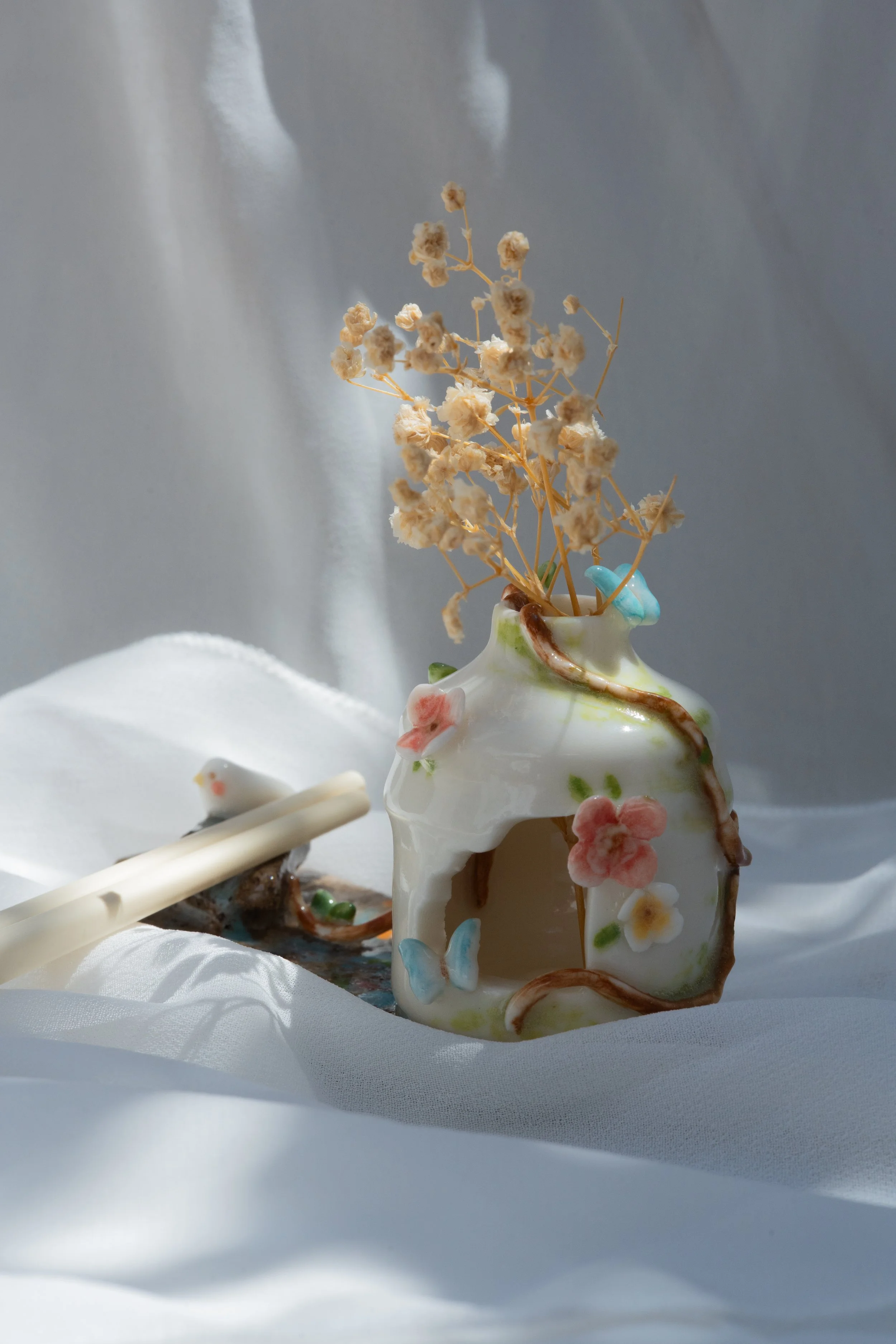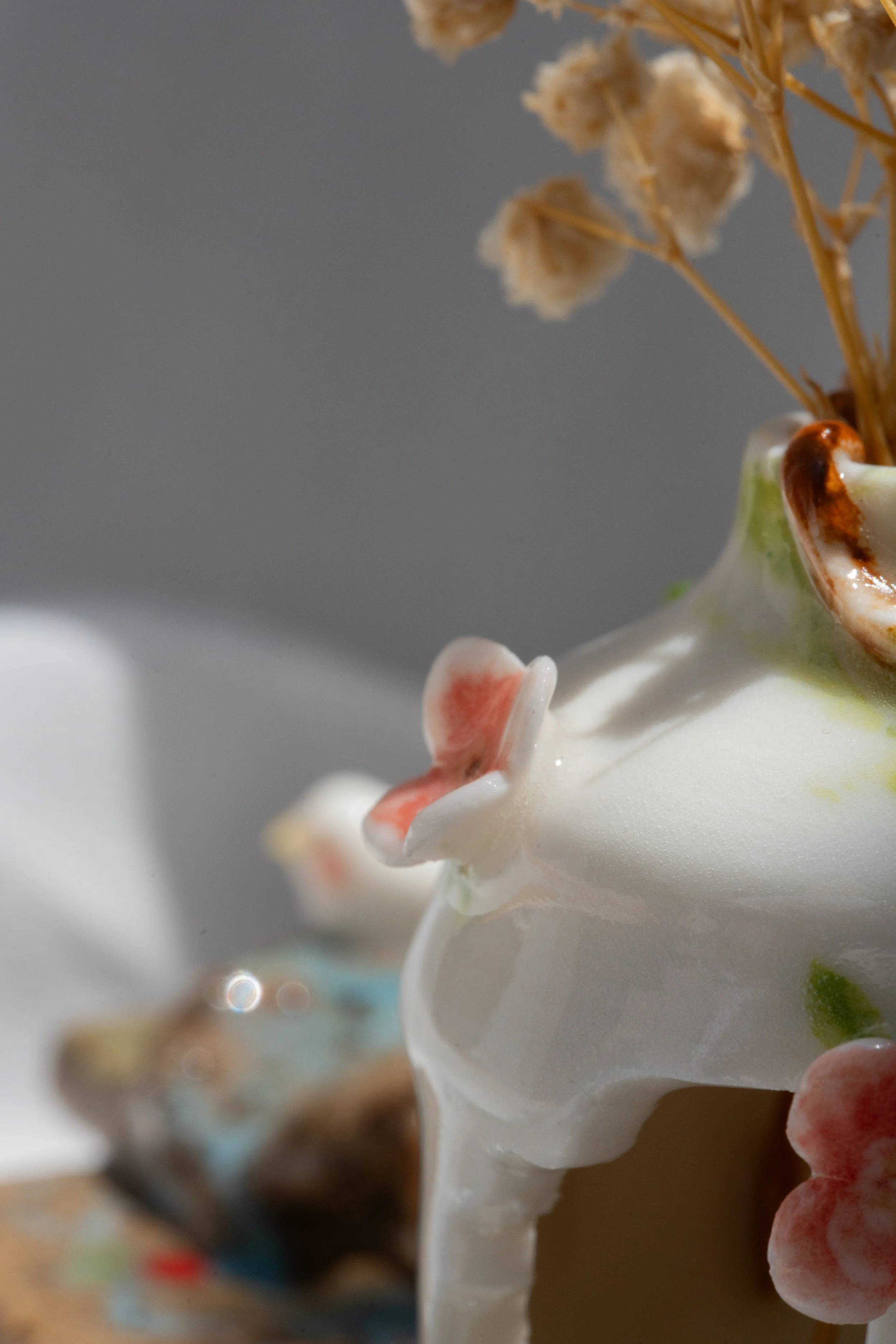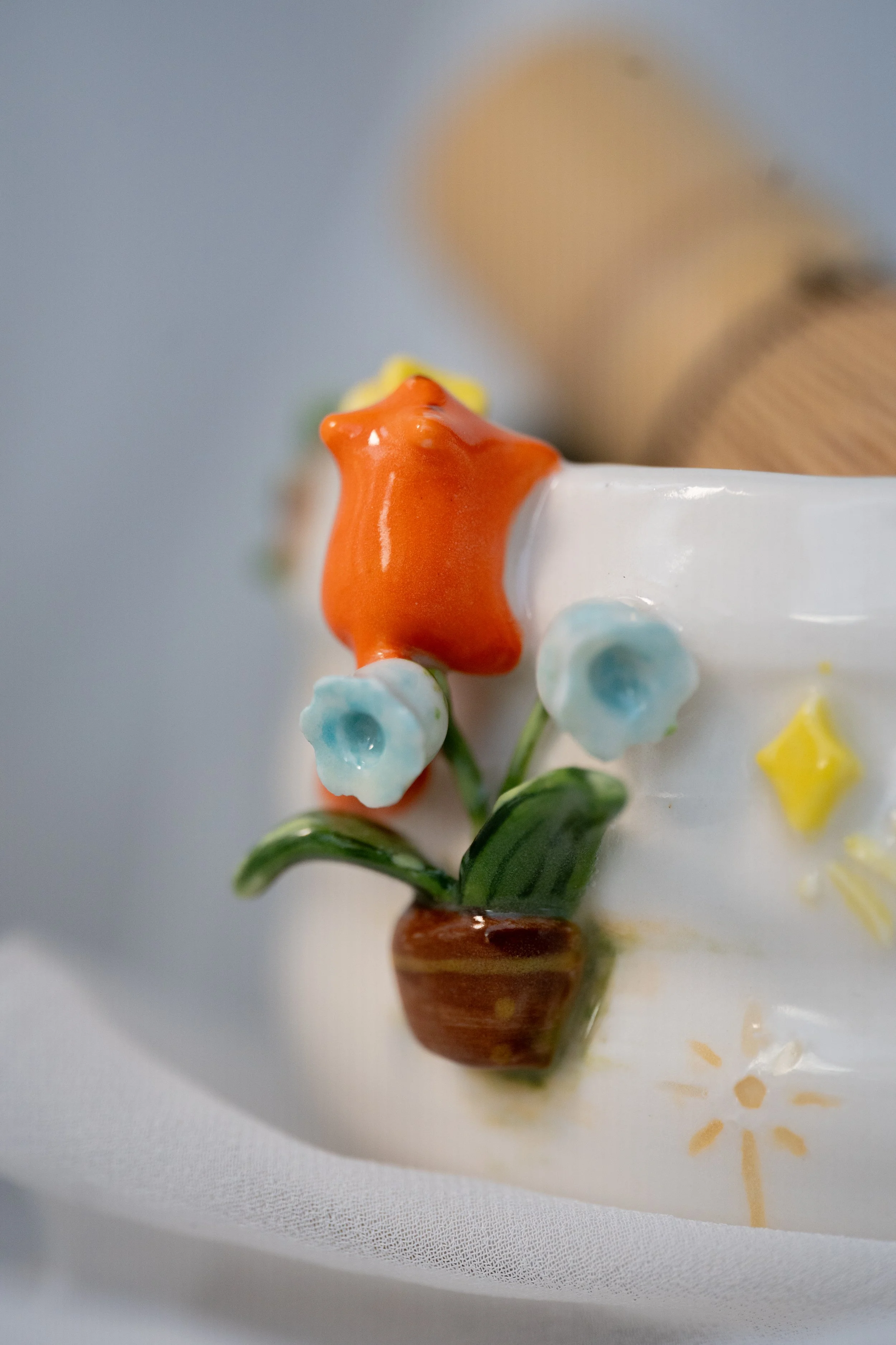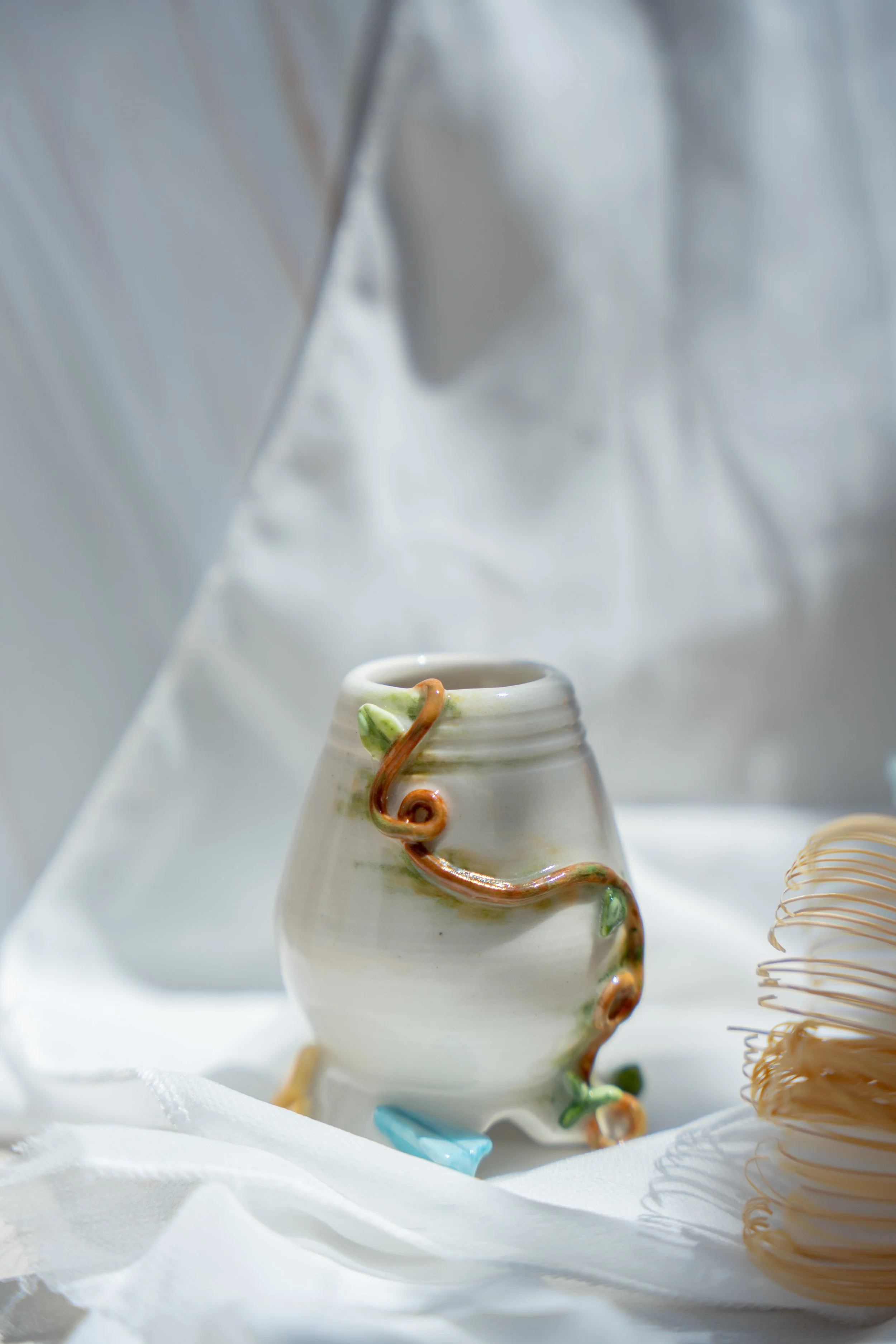 Material: High quality porcelain ceramics, hand-thrown on a wheel and post-processed through hand-building. The base is made using BRT clay with high grog for texture and structure
