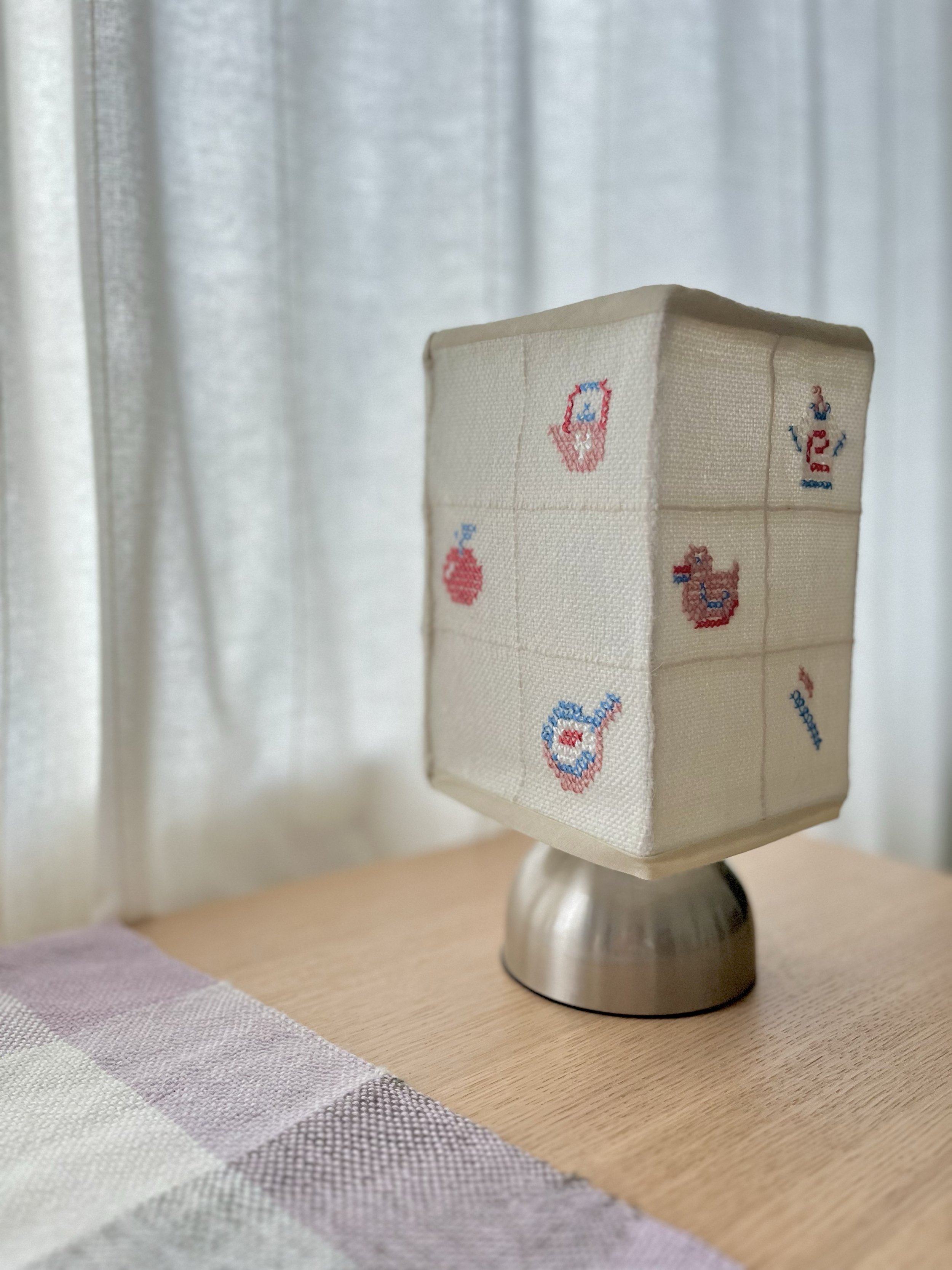 How tall could the tallest house be? The multi-storey scarf suggests it could be about 1.5 metres. This house is built from handwoven plaid, all kinds of yarn and reversible cross-stitches.