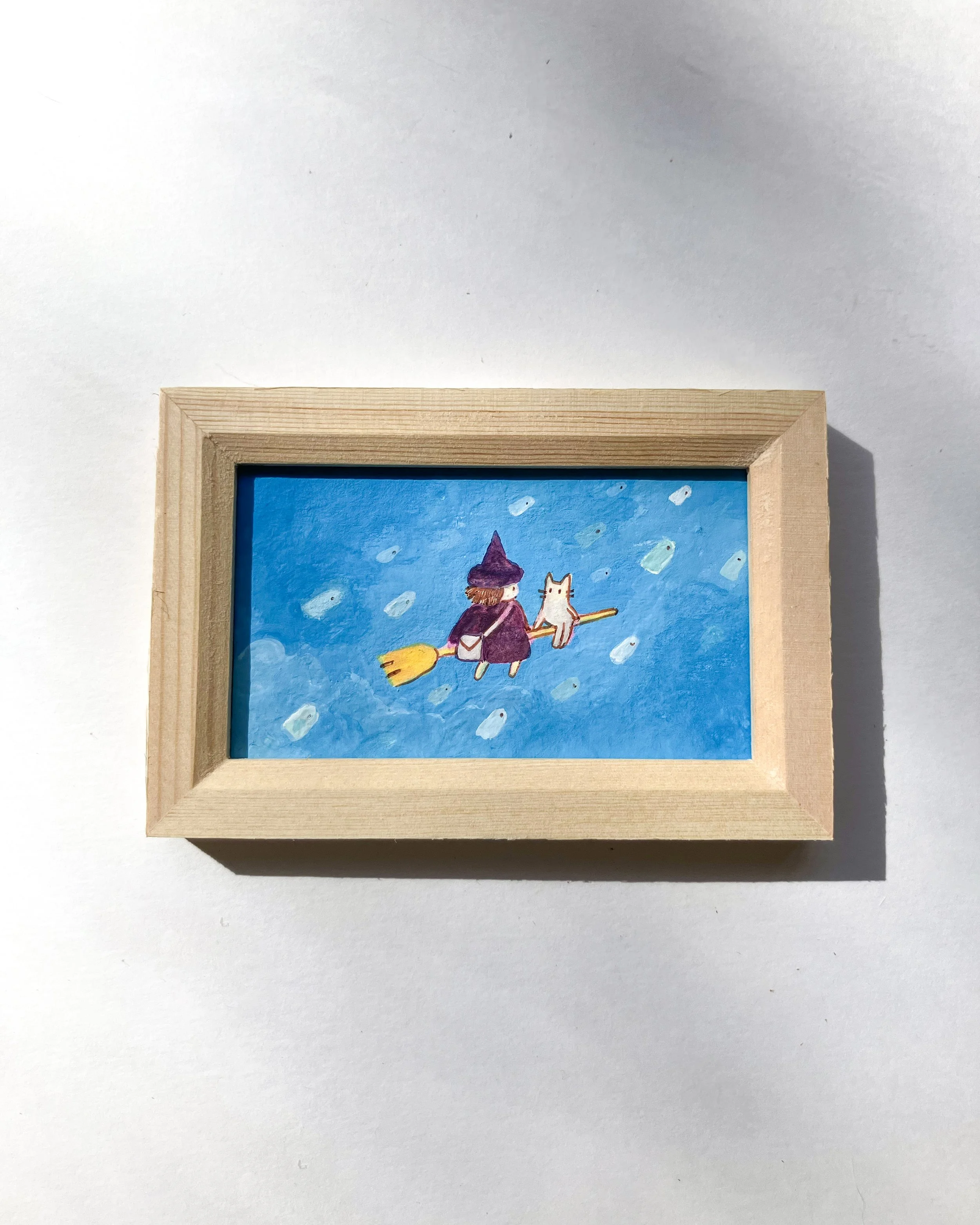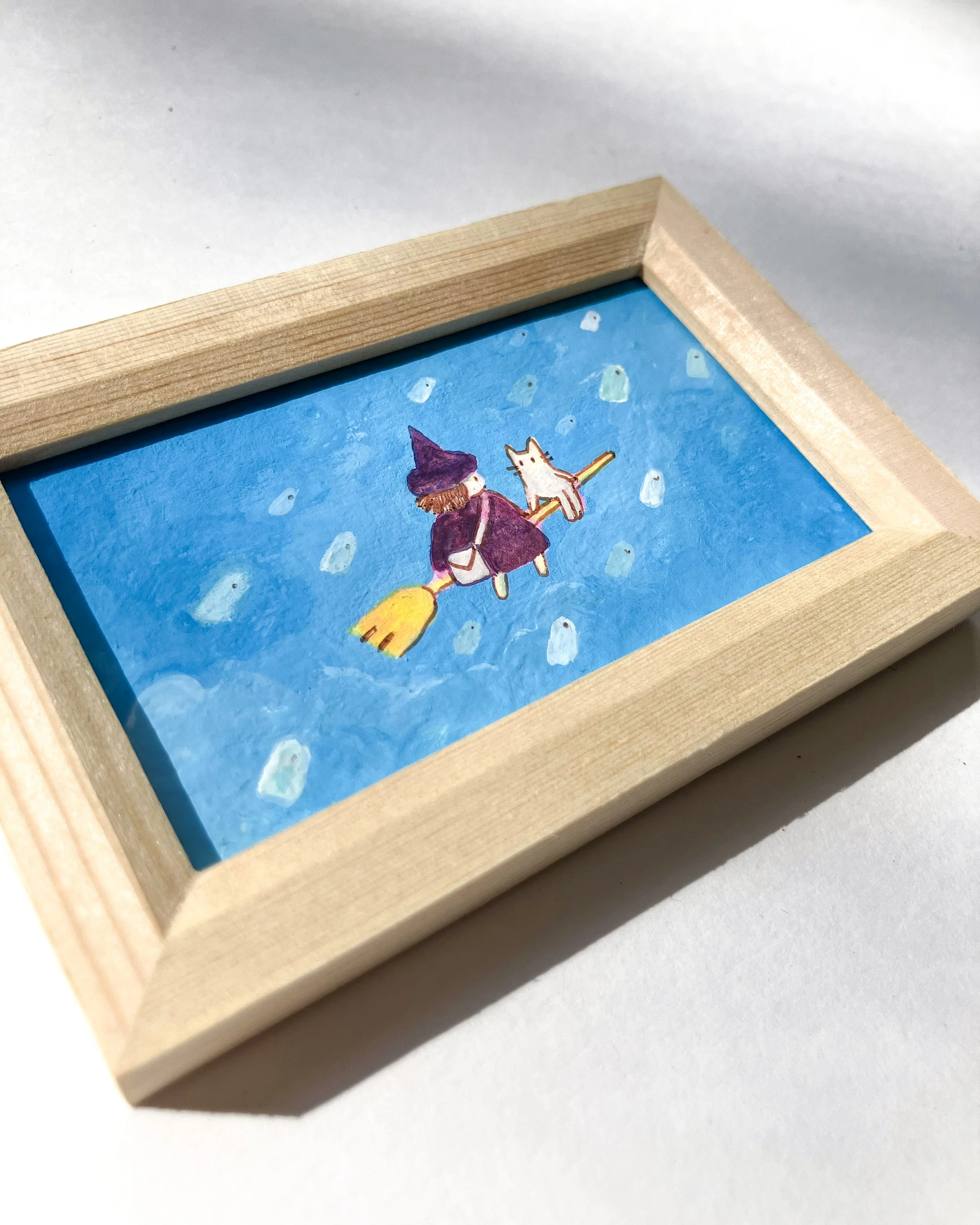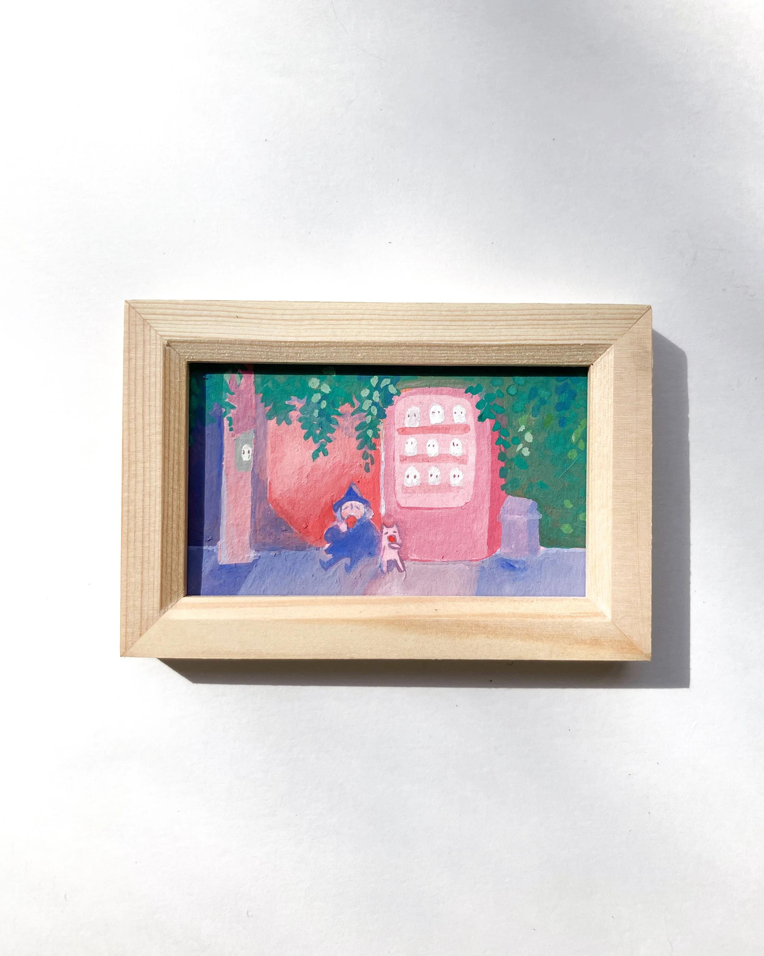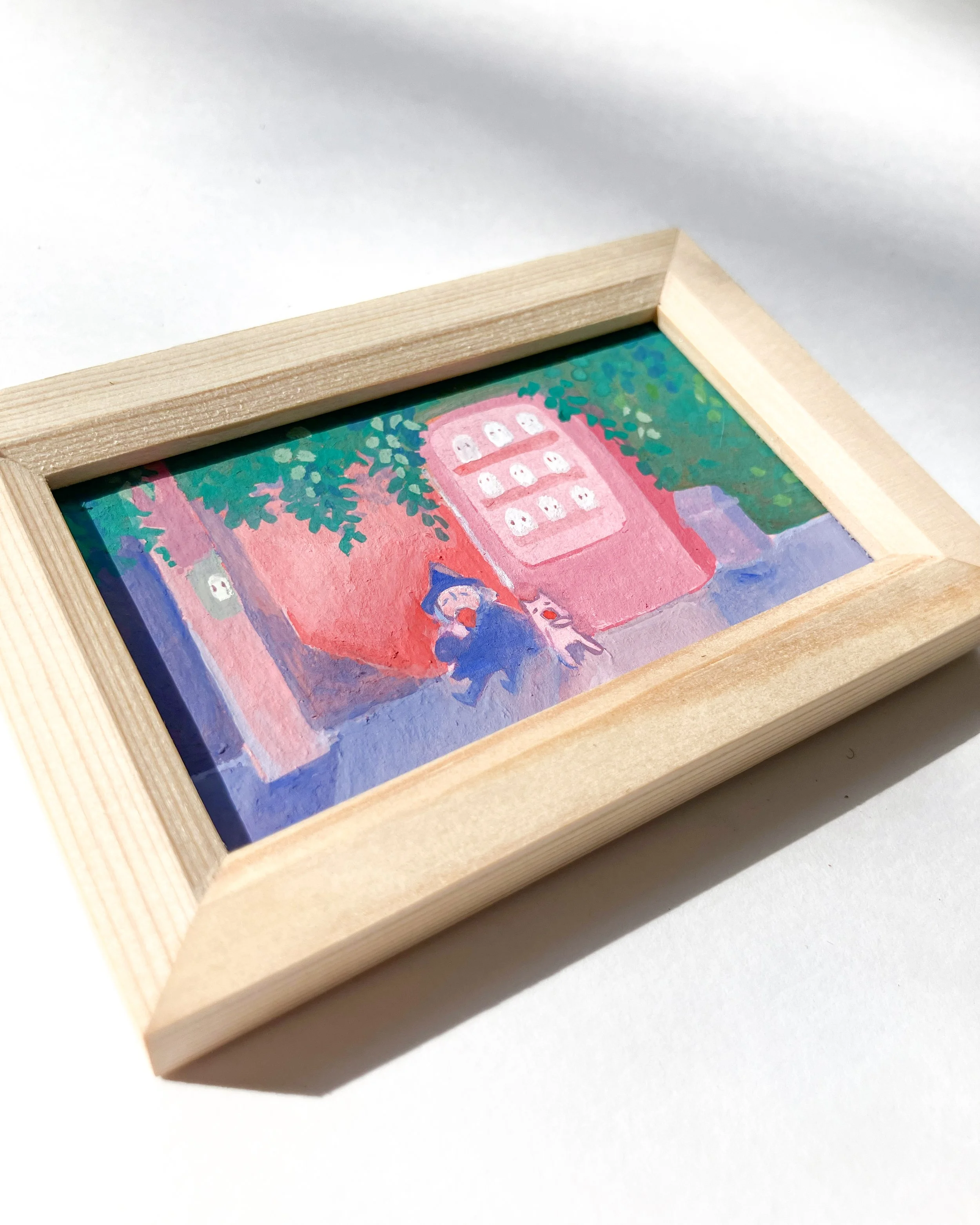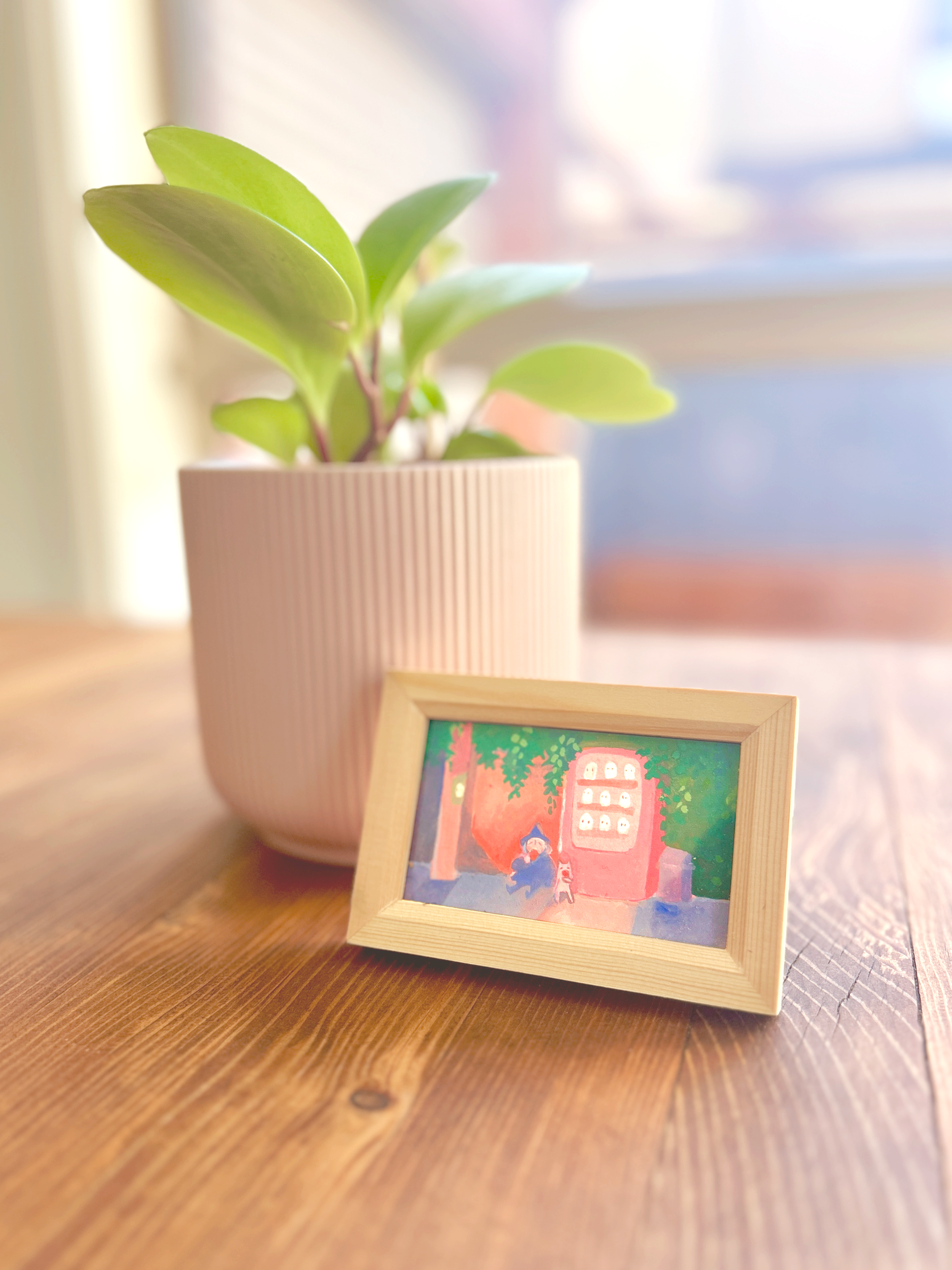 This original mini painting is lovingly hand painted with gouache on watercolour paper and includes the frame.