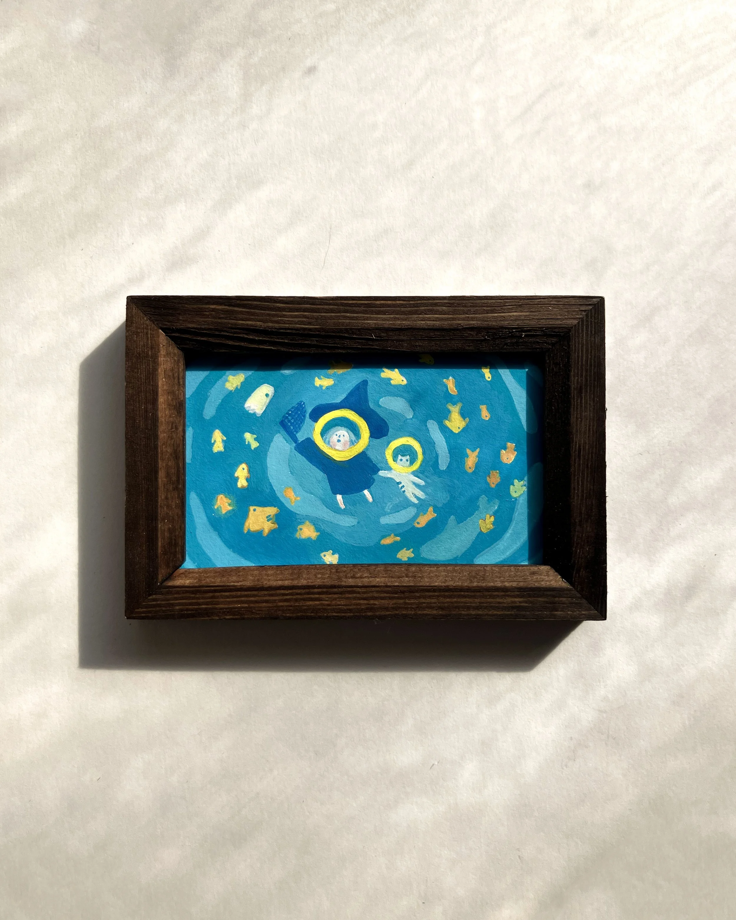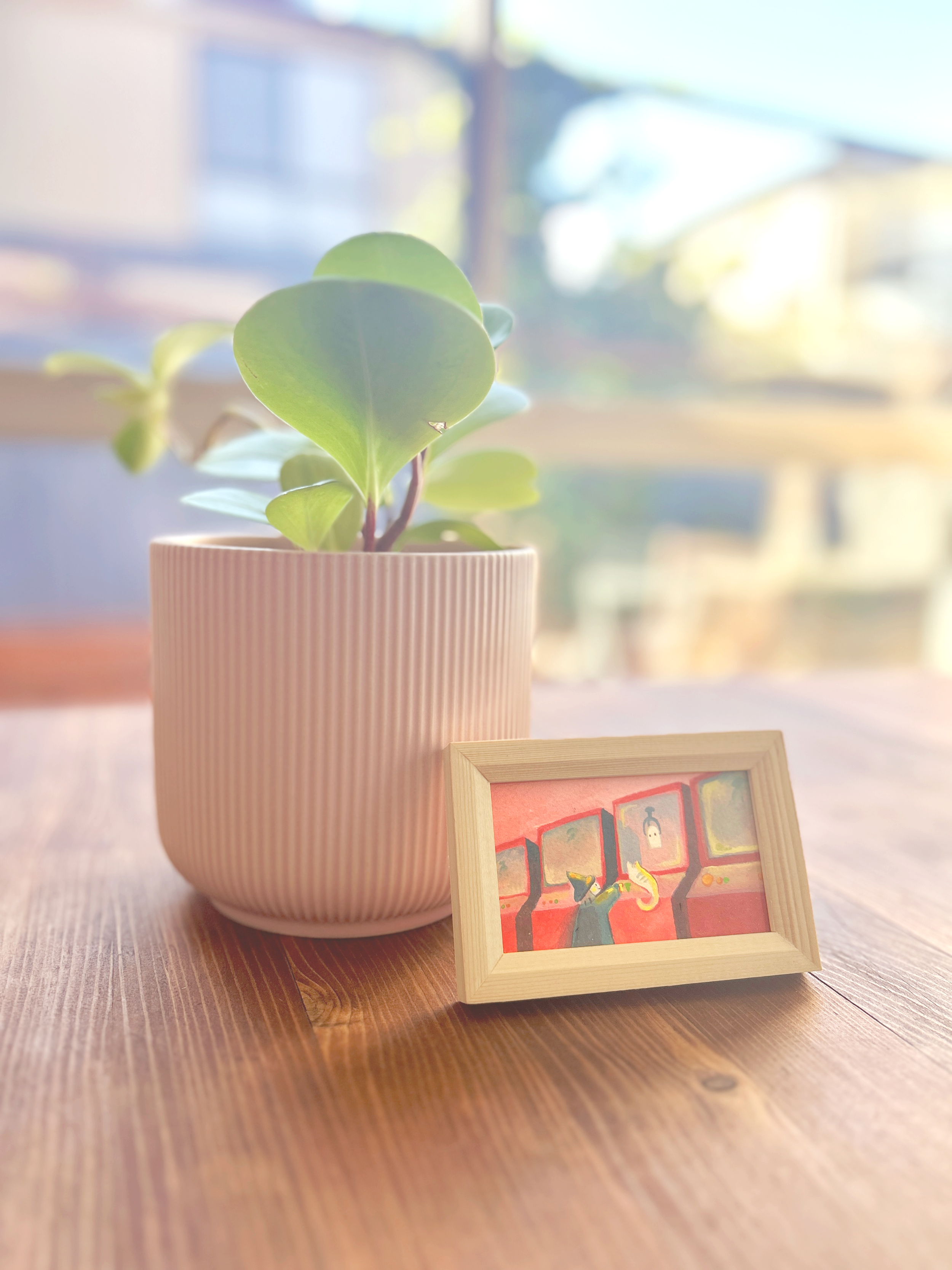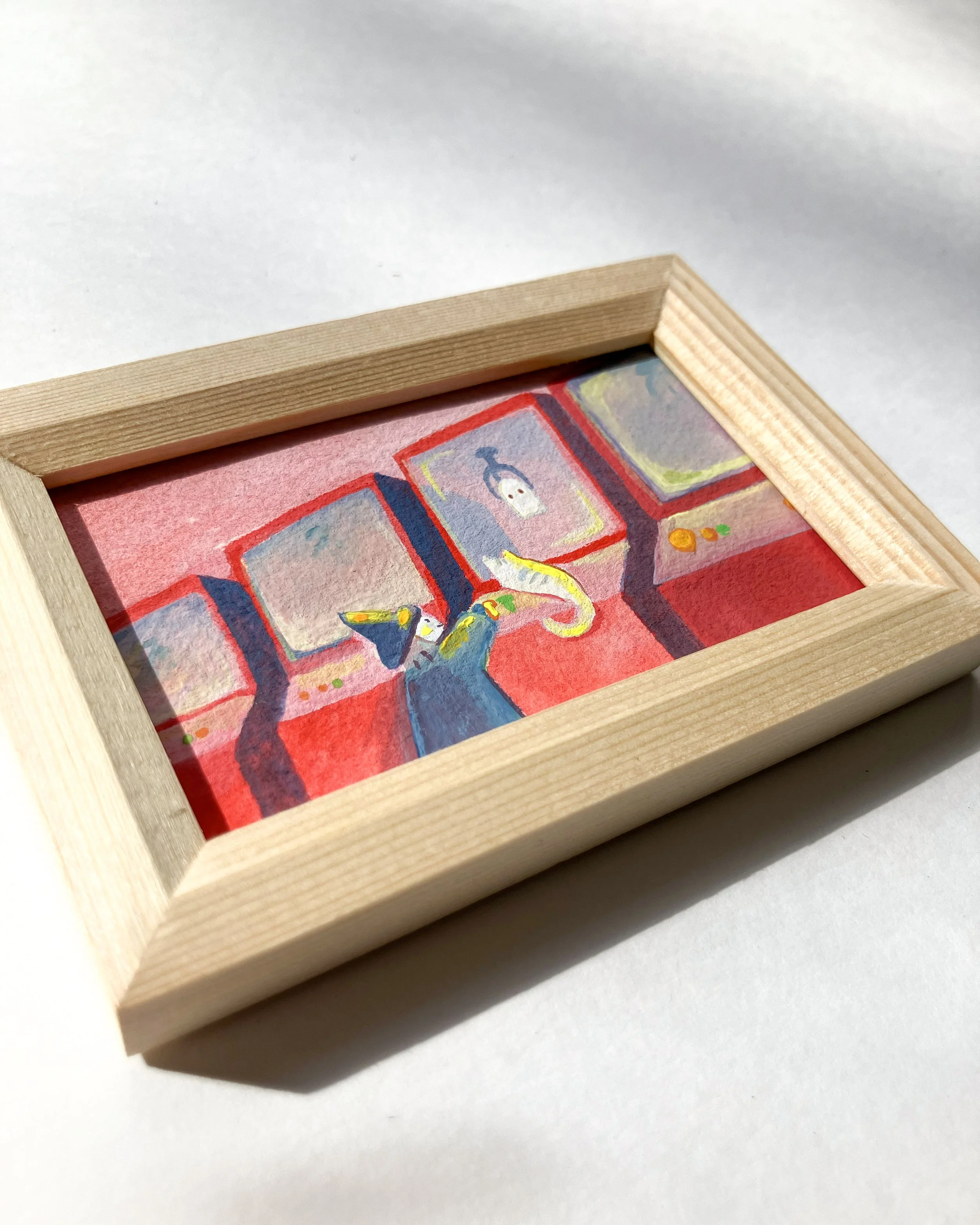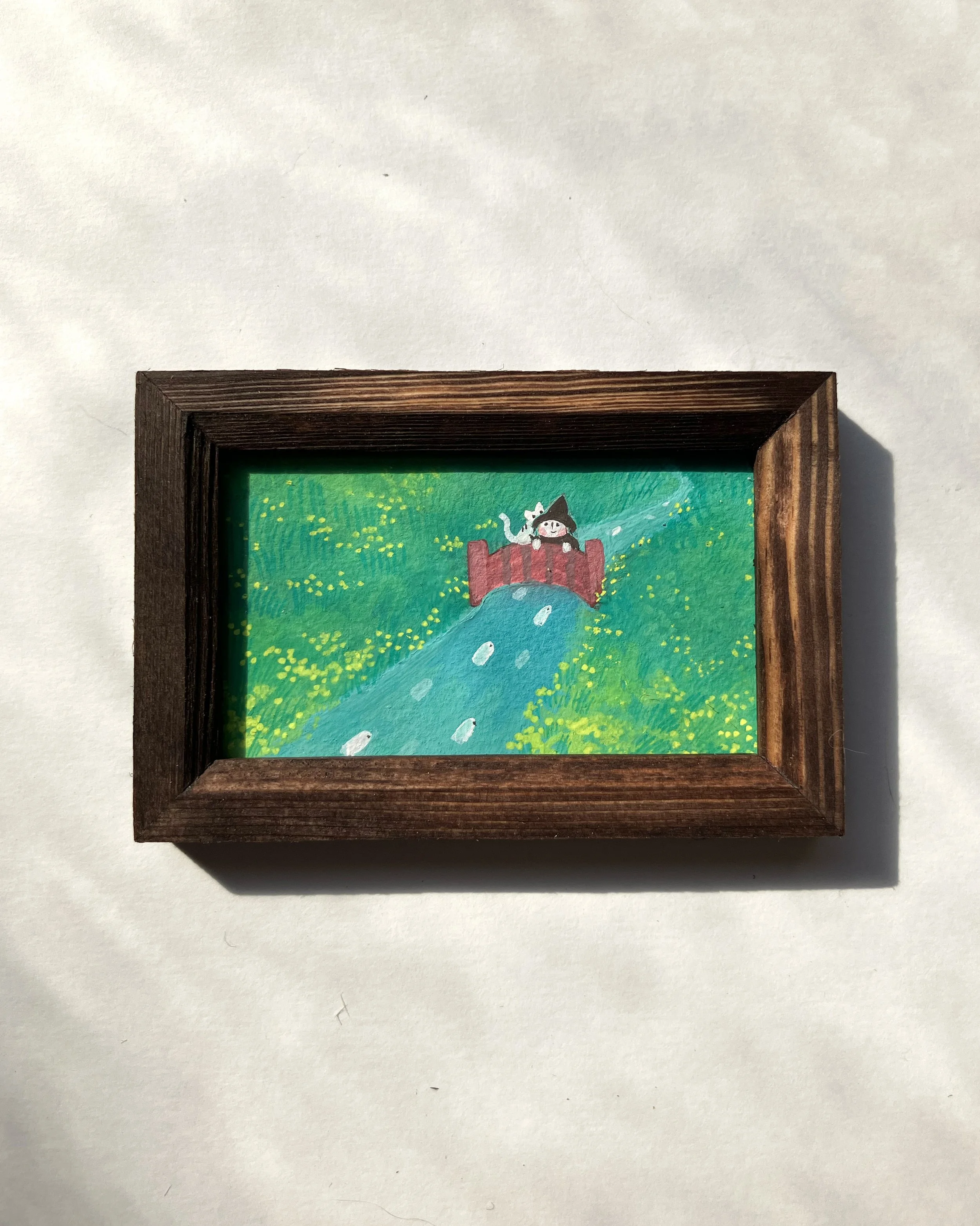 This original mini painting is lovingly hand painted with gouache on watercolour paper and includes the frame.