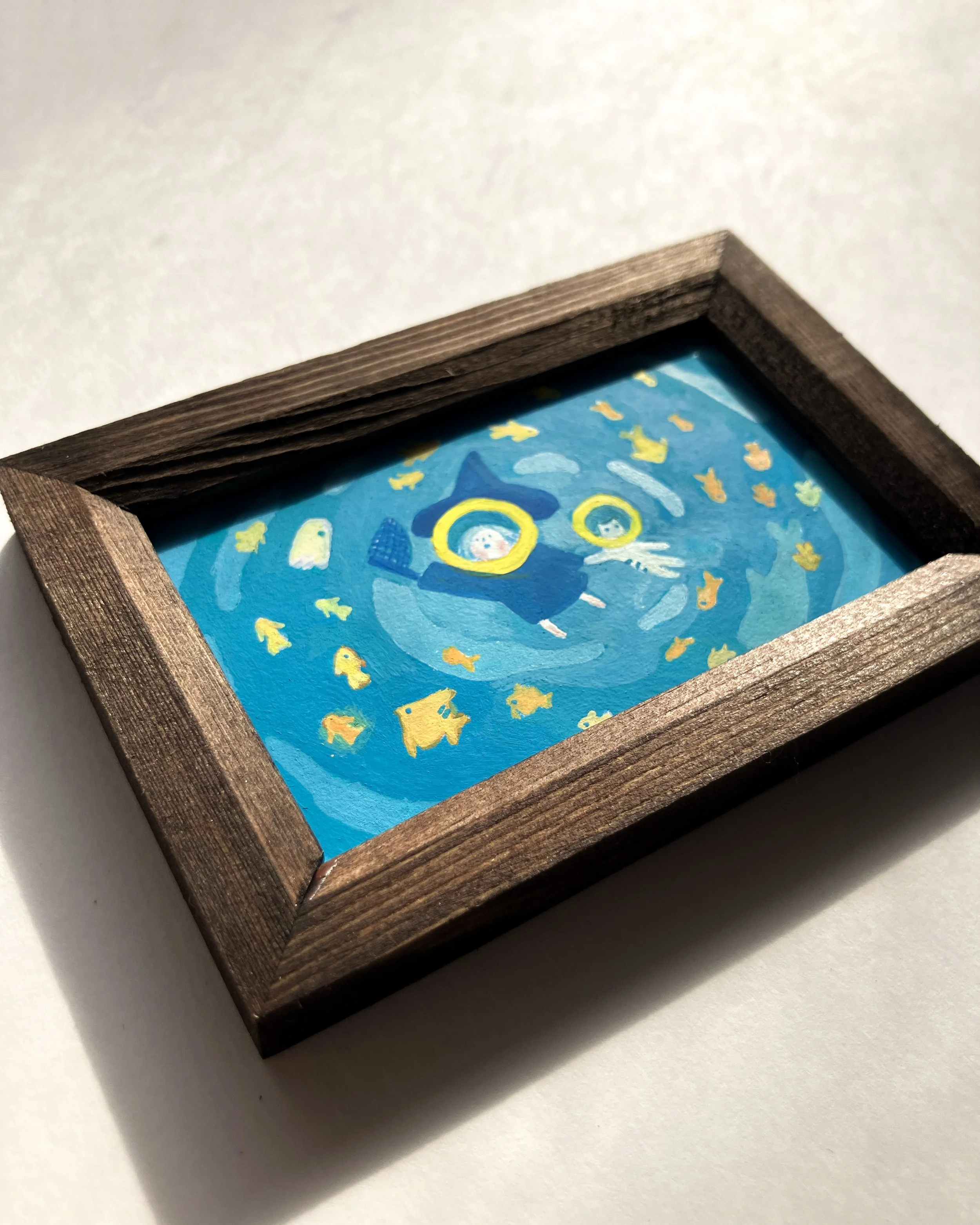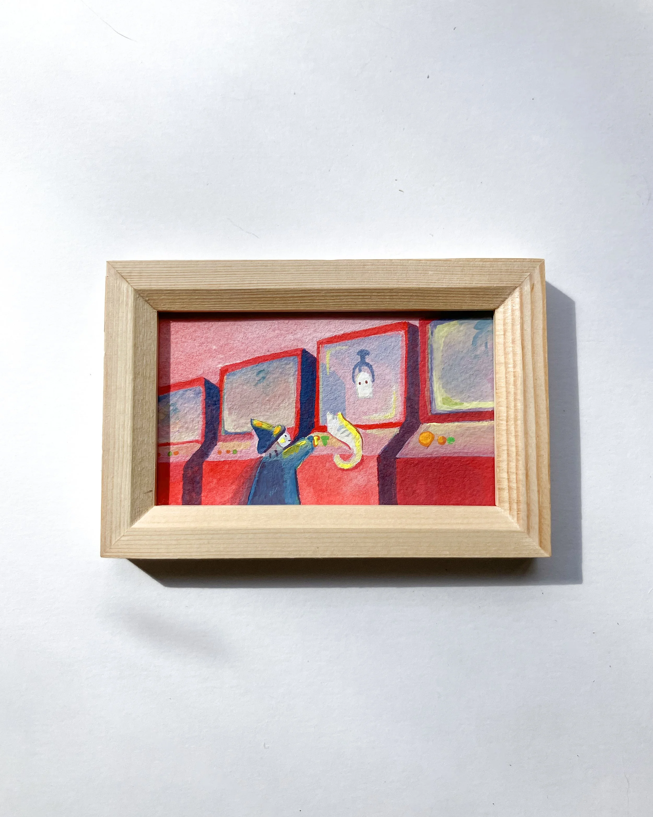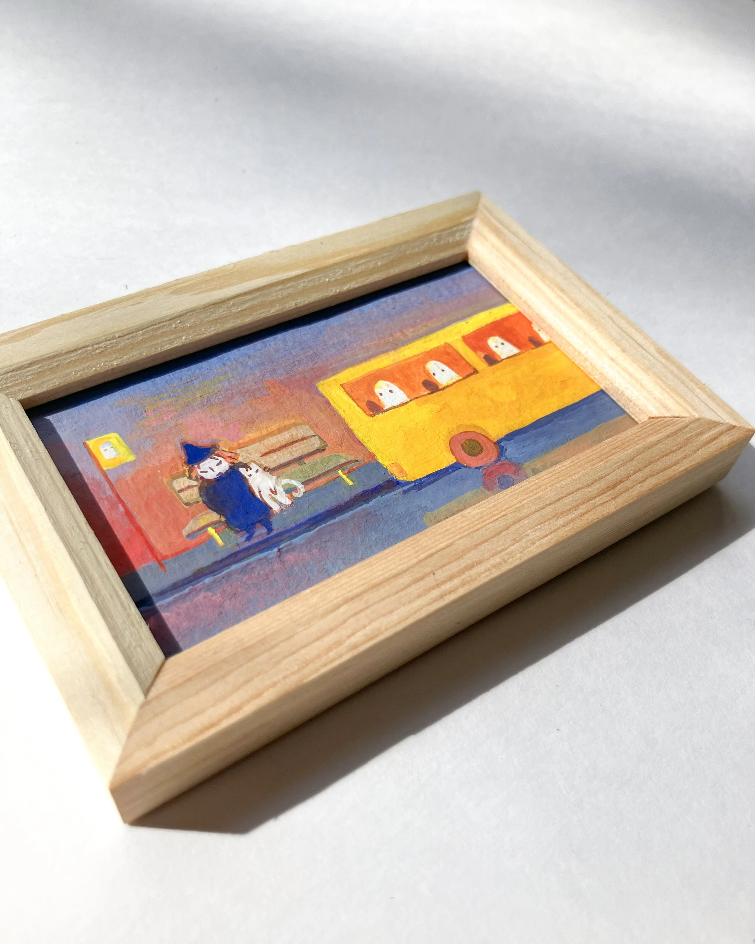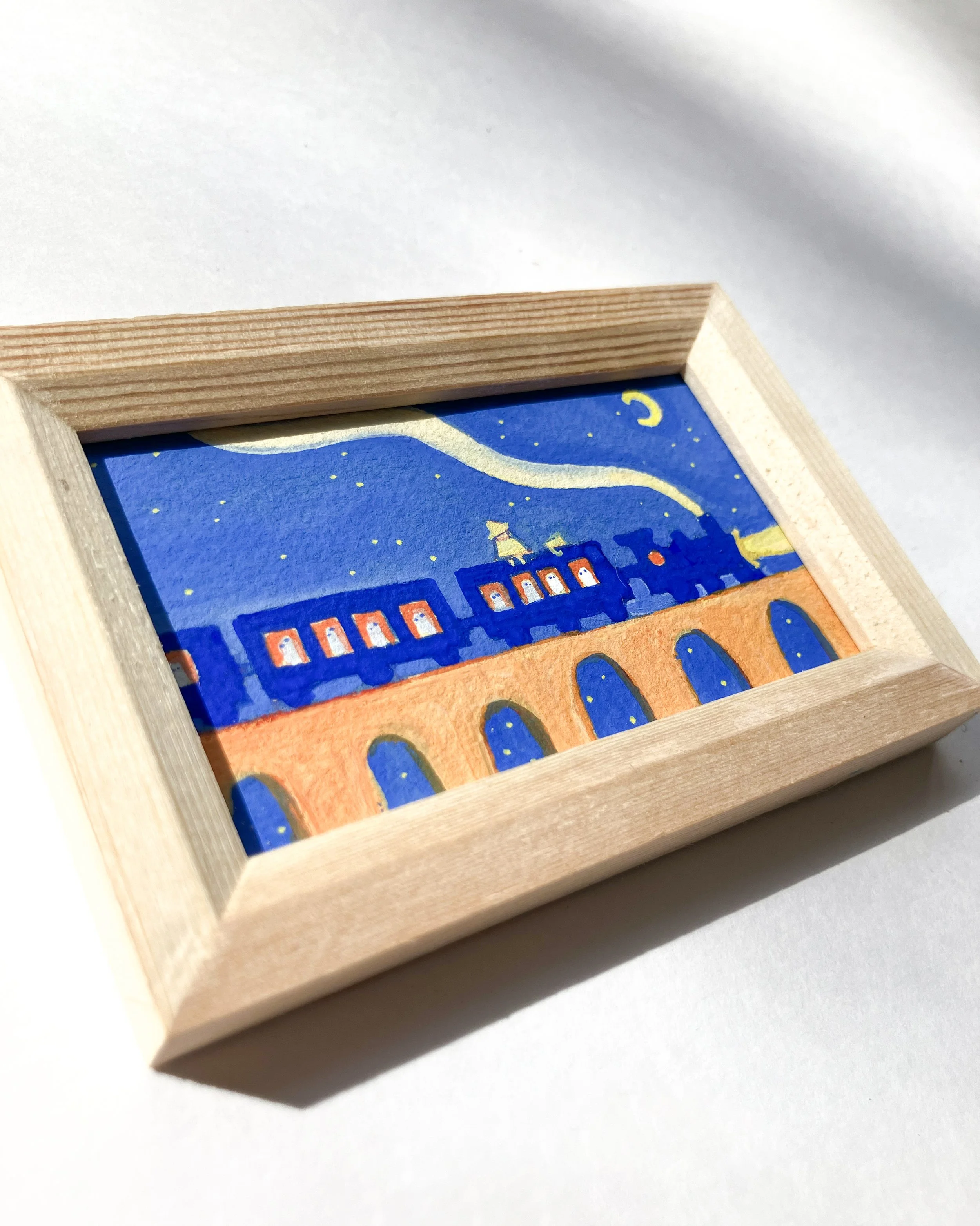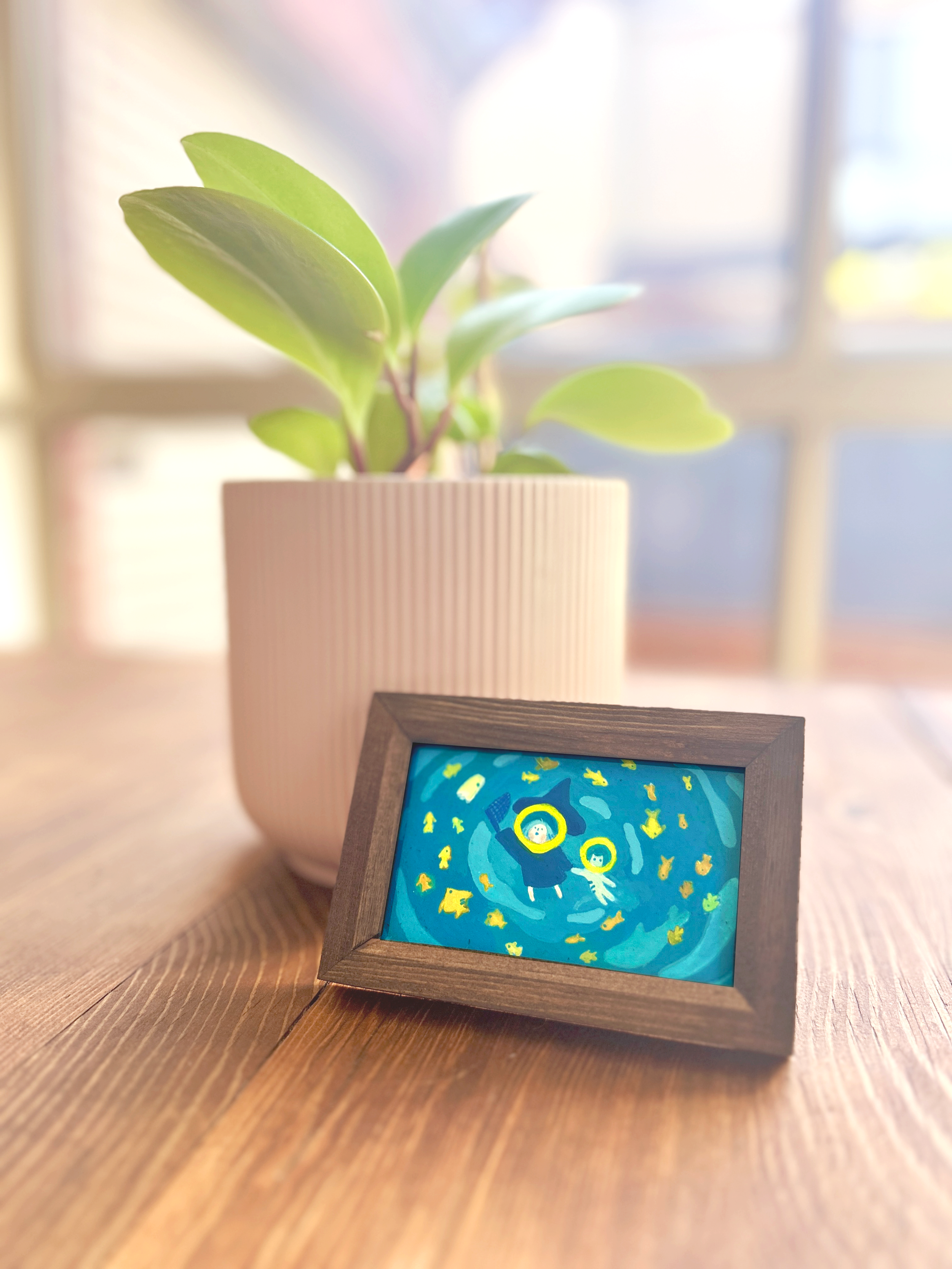 This original mini painting is lovingly hand painted with gouache on watercolour paper and includes the frame.