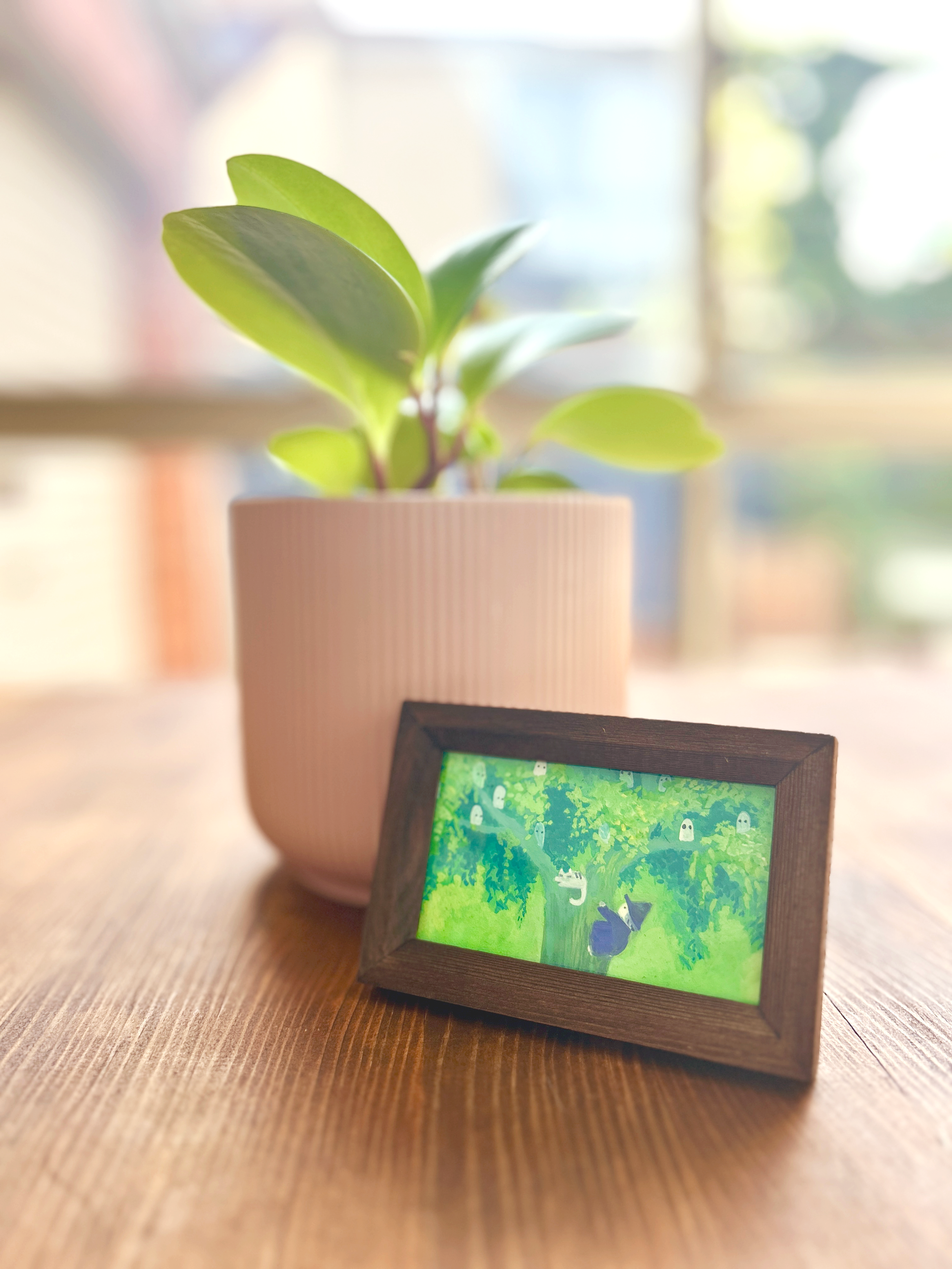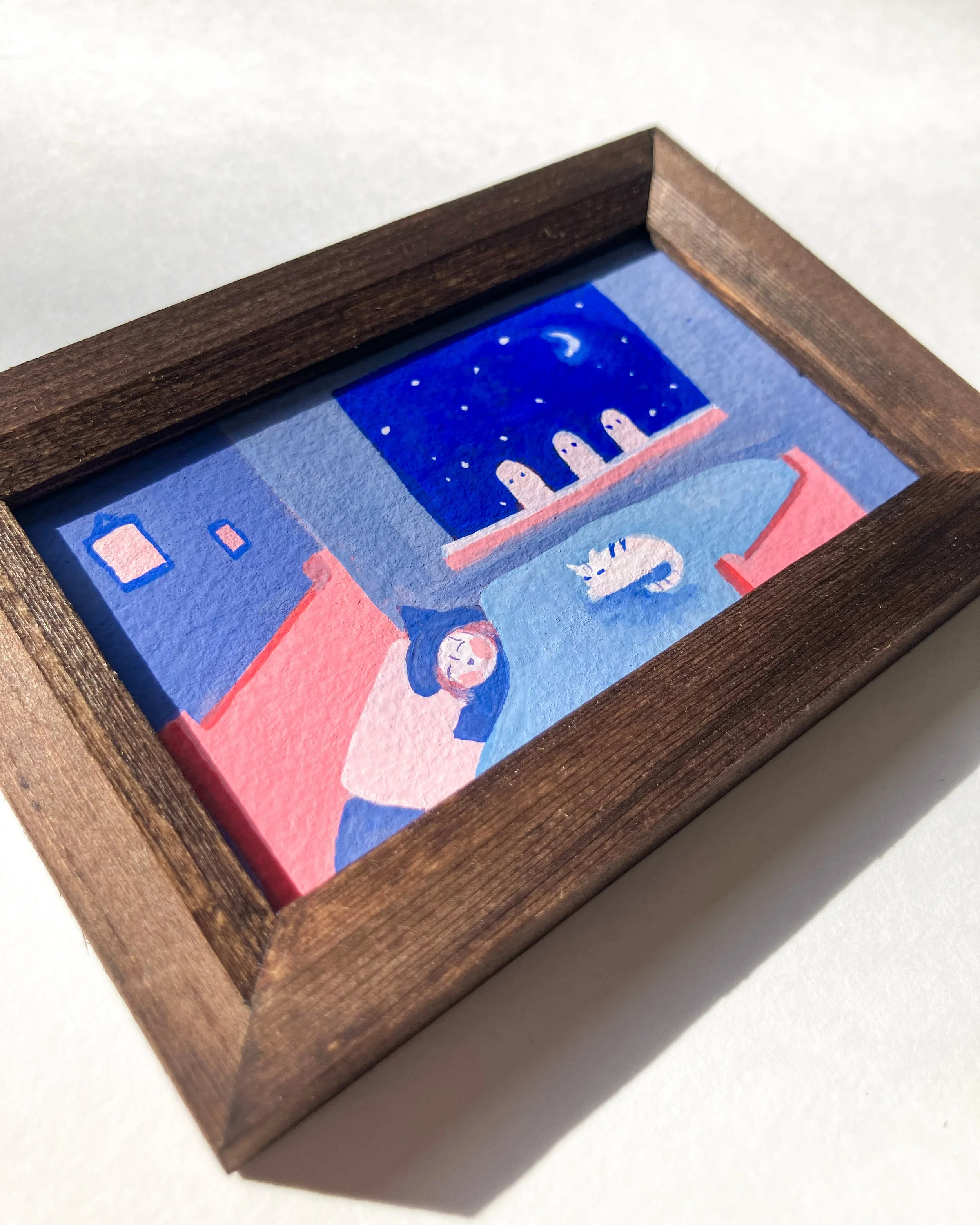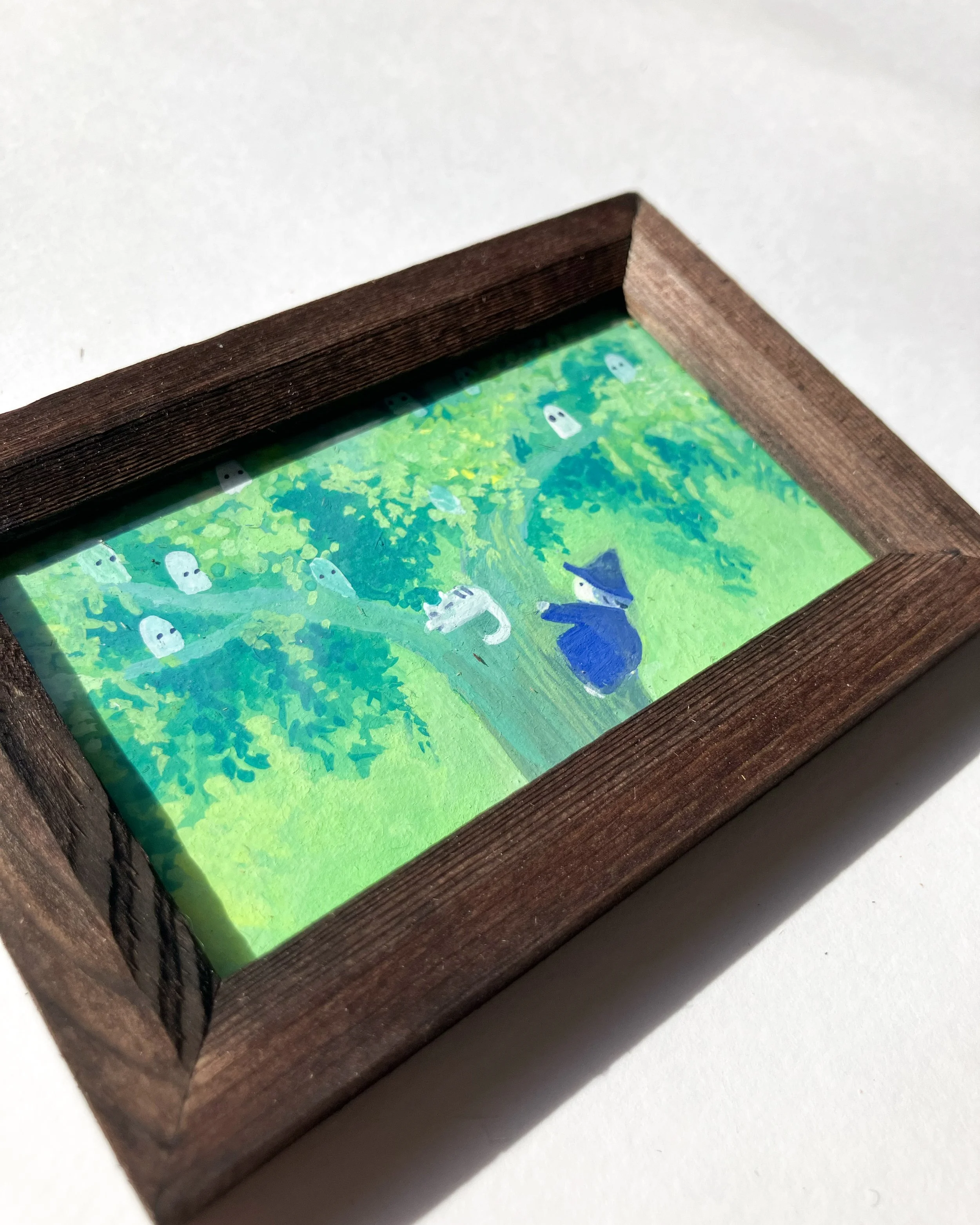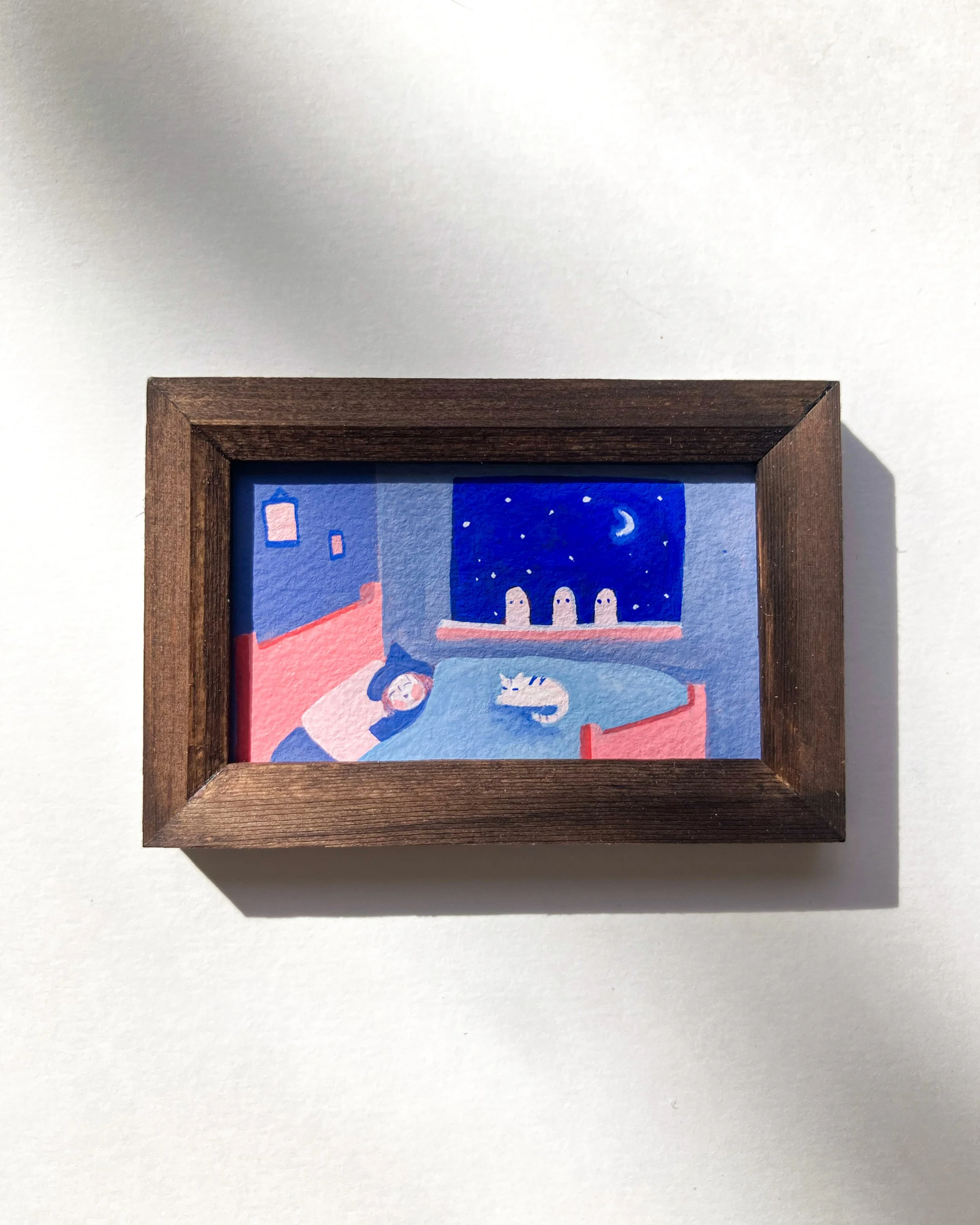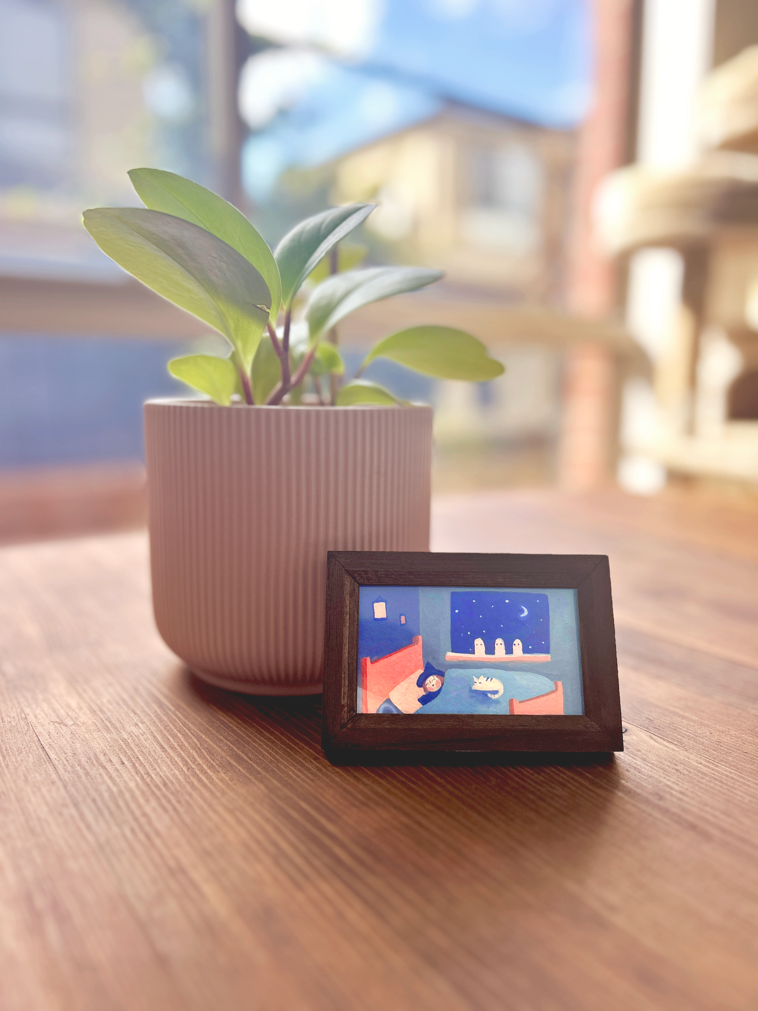 This original mini painting is lovingly hand painted with gouache on watercolour paper and includes the frame.