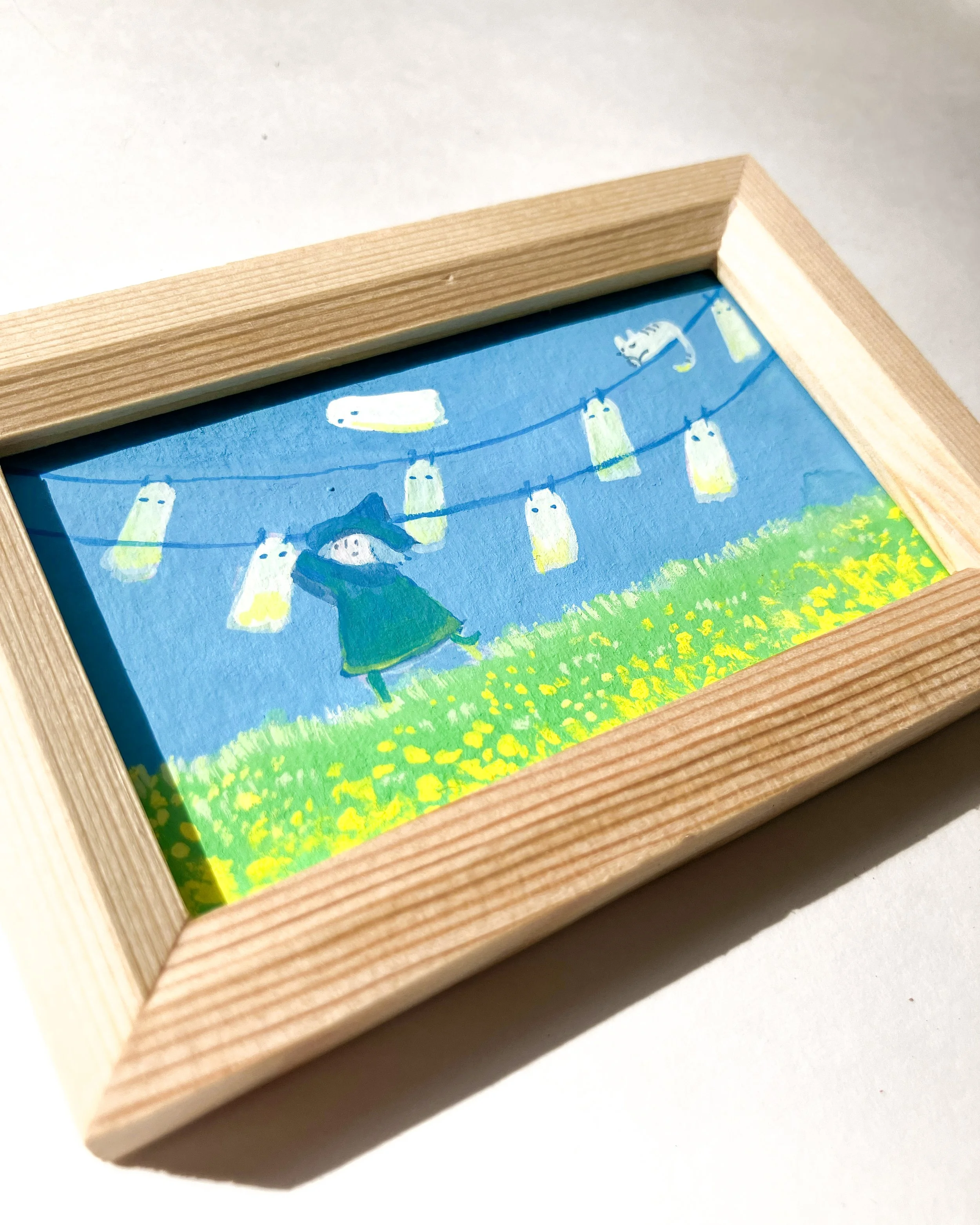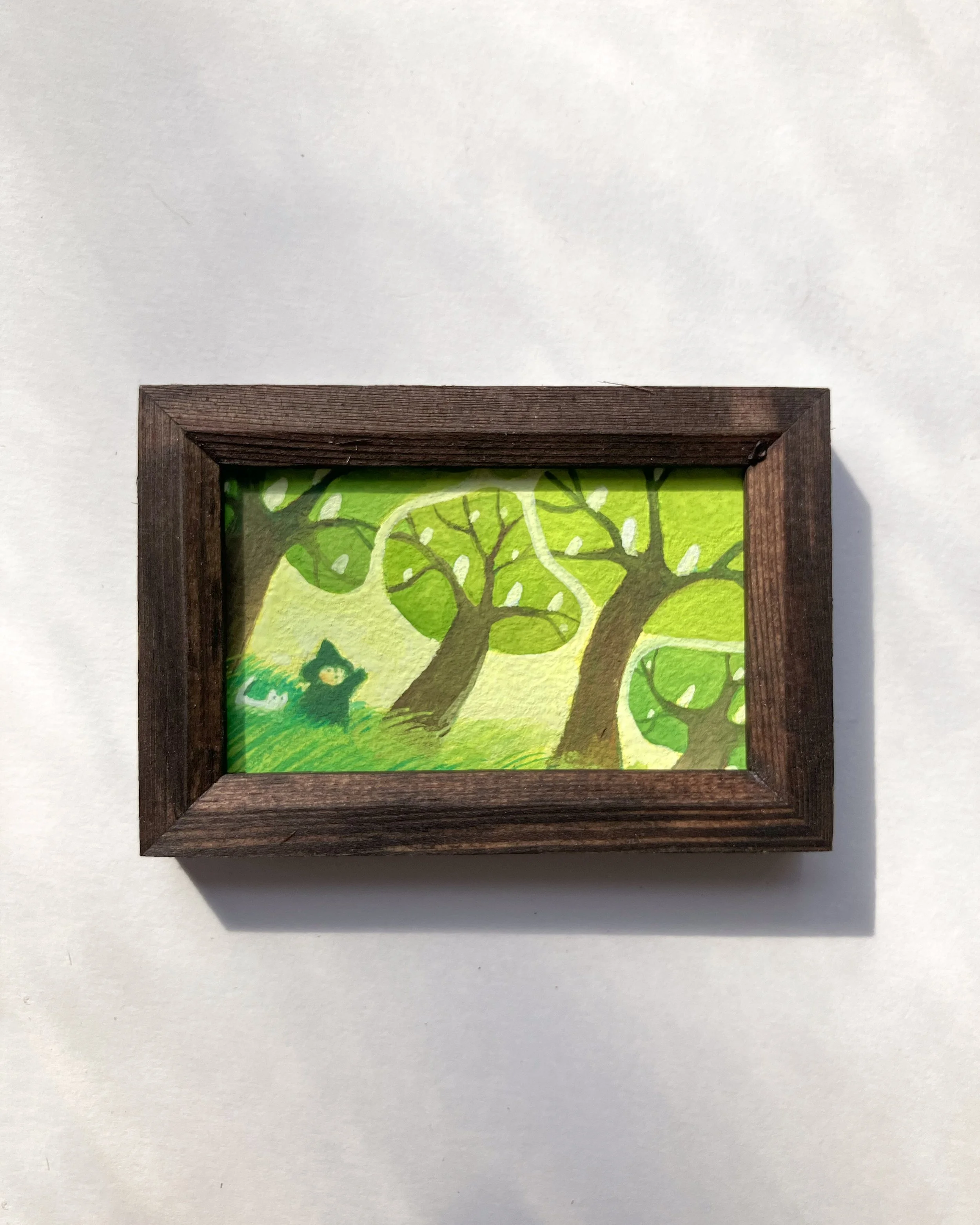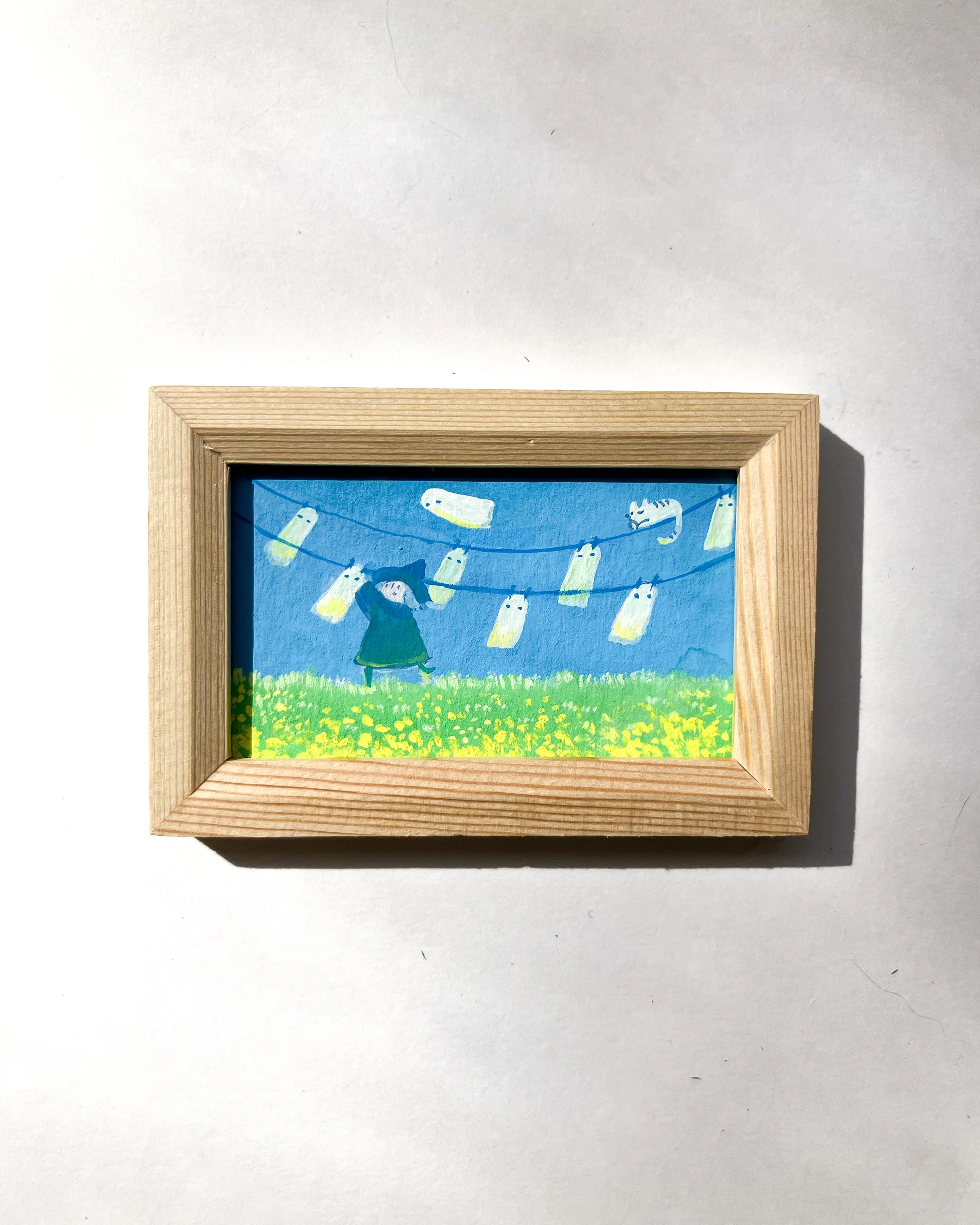 This original mini painting is lovingly hand painted with gouache on watercolour paper and includes the frame.
