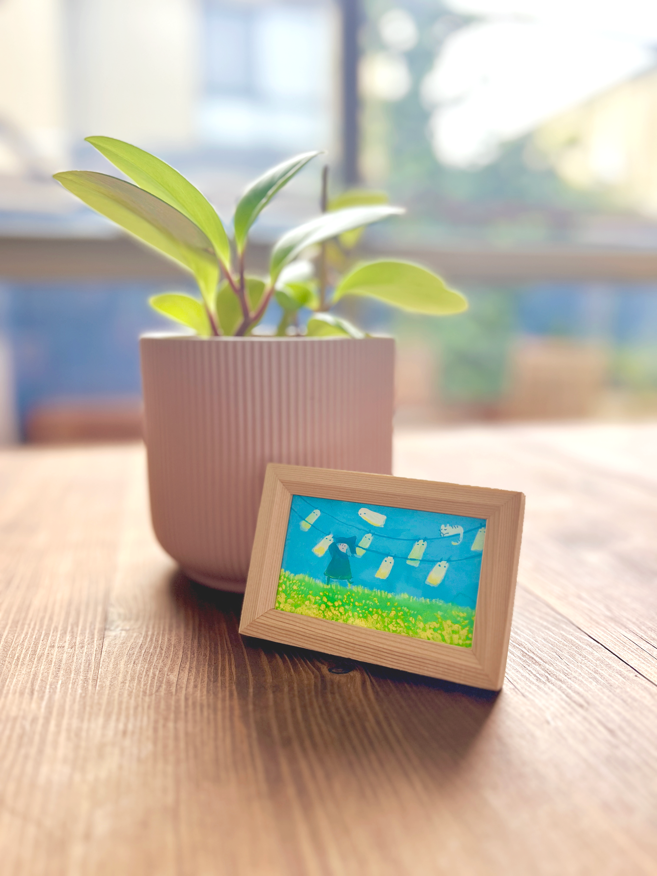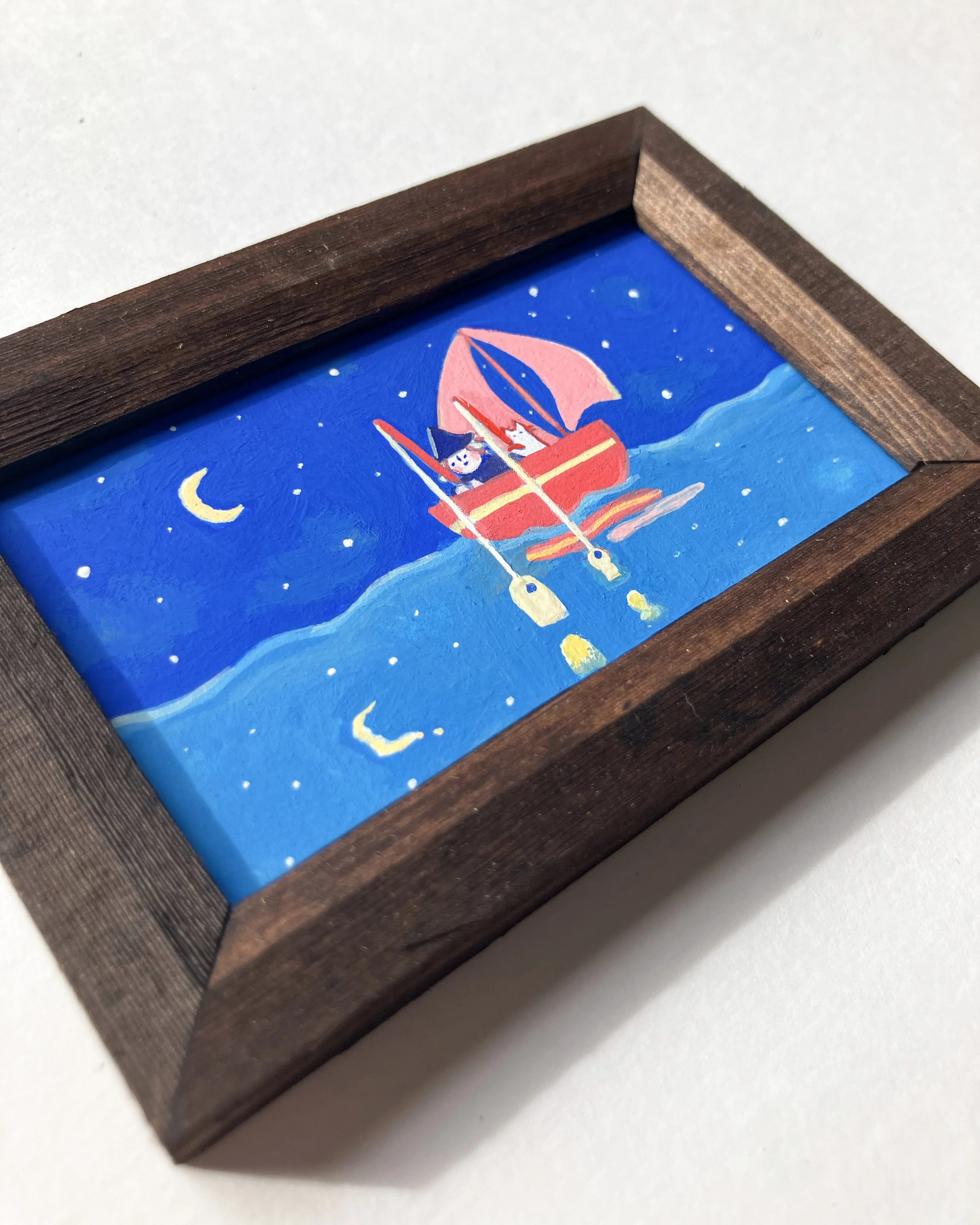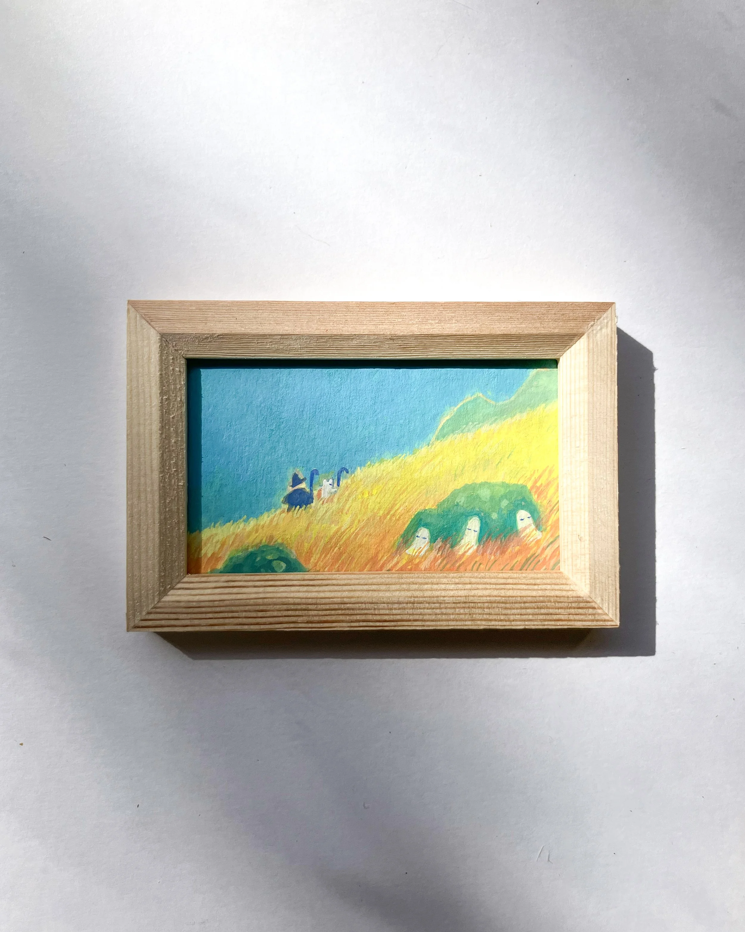 This original mini painting is lovingly hand painted with gouache on watercolour paper and includes the frame.